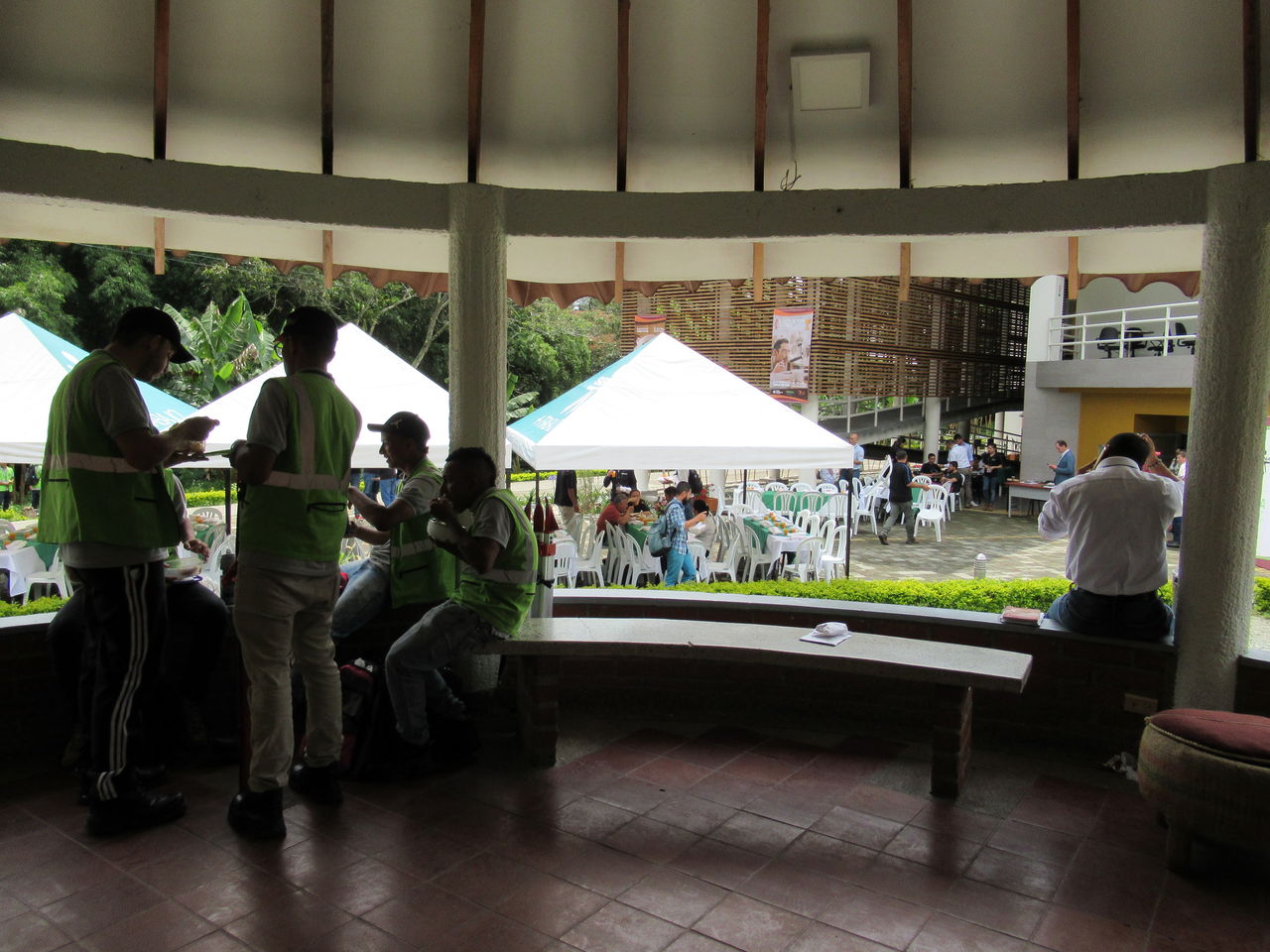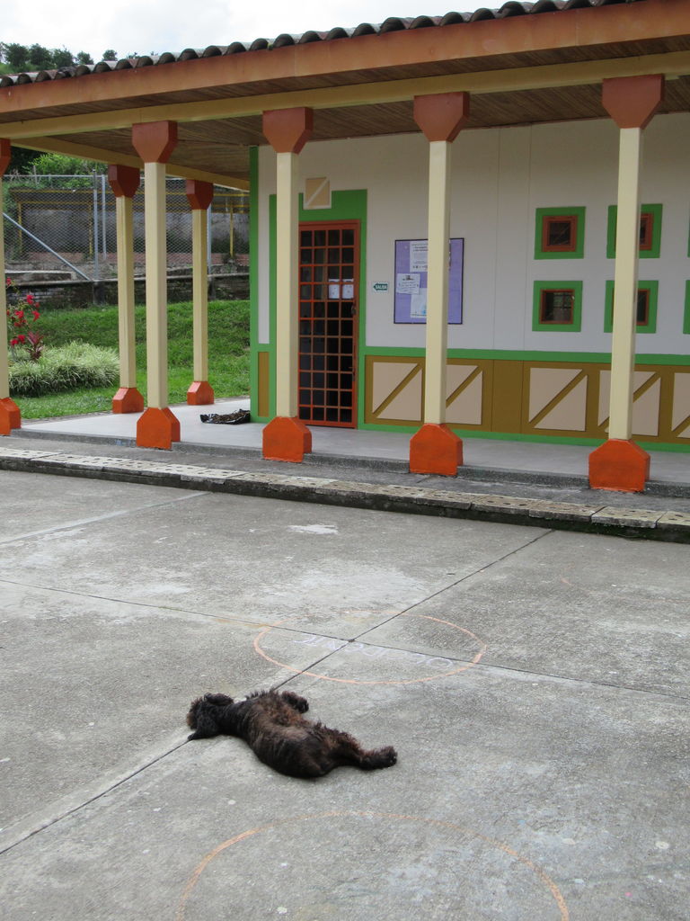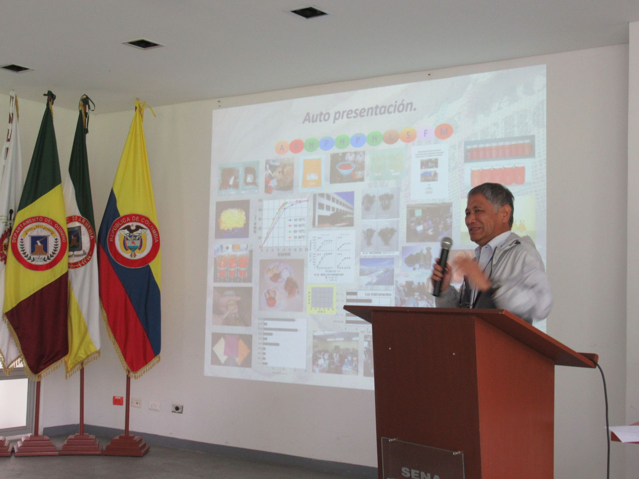 正門から続く通路を奥に入ったところに、カフェテリアがあって、その奥にコーヒーの研究棟があります。キンディオからリサラルダ、カルダス、アンティオキアまで続くコーヒー地帯にあるSENAの中で中心的な役割を果たしているのがアルメニアのSENAコーヒー部門です。向こうに見える建物の1階右側入ってすぐの会場で、翌日コーヒー生産者や従事者、研究者対象の研修会があるというので、2日続けてSENAに通うことになりました。