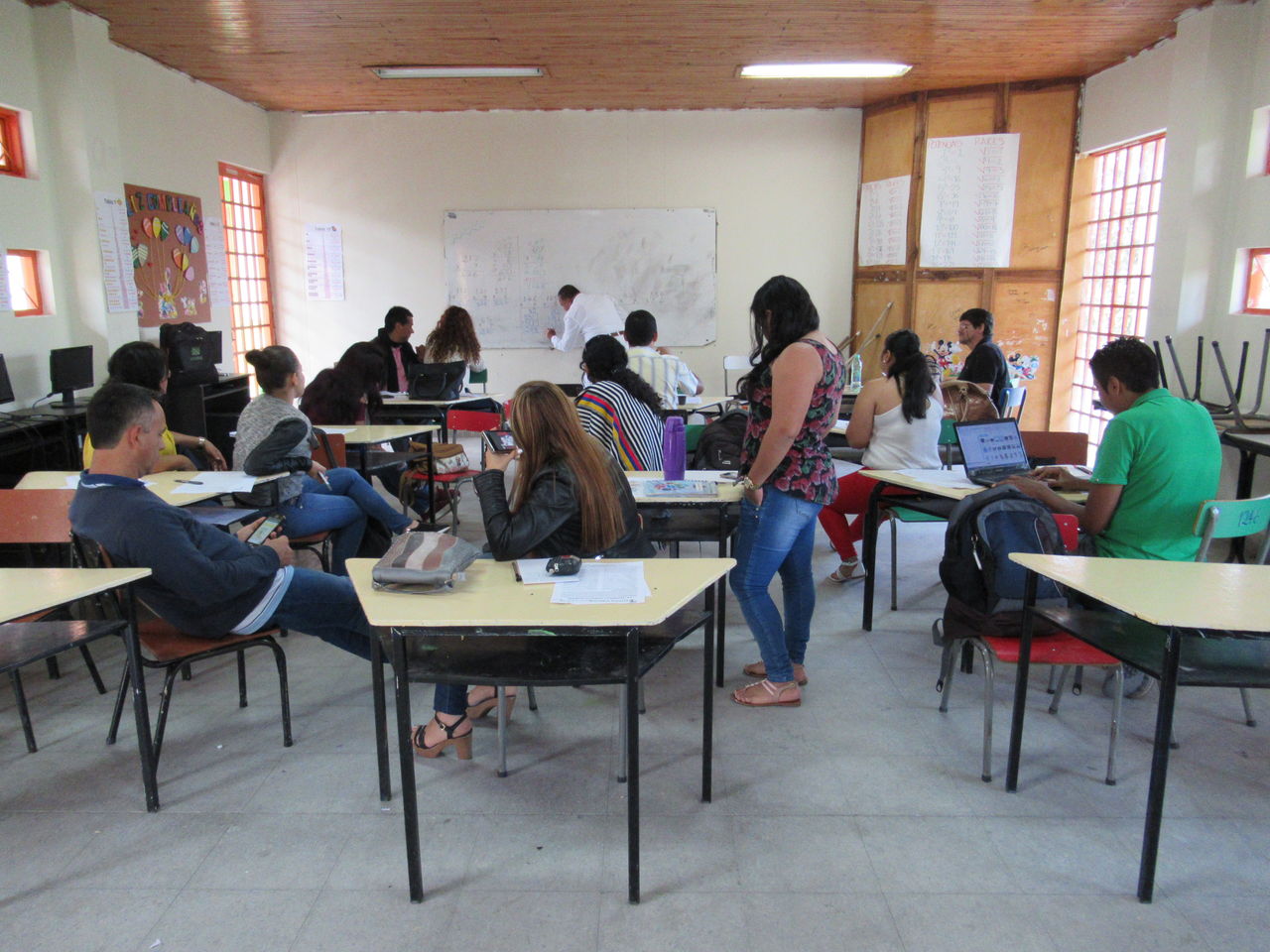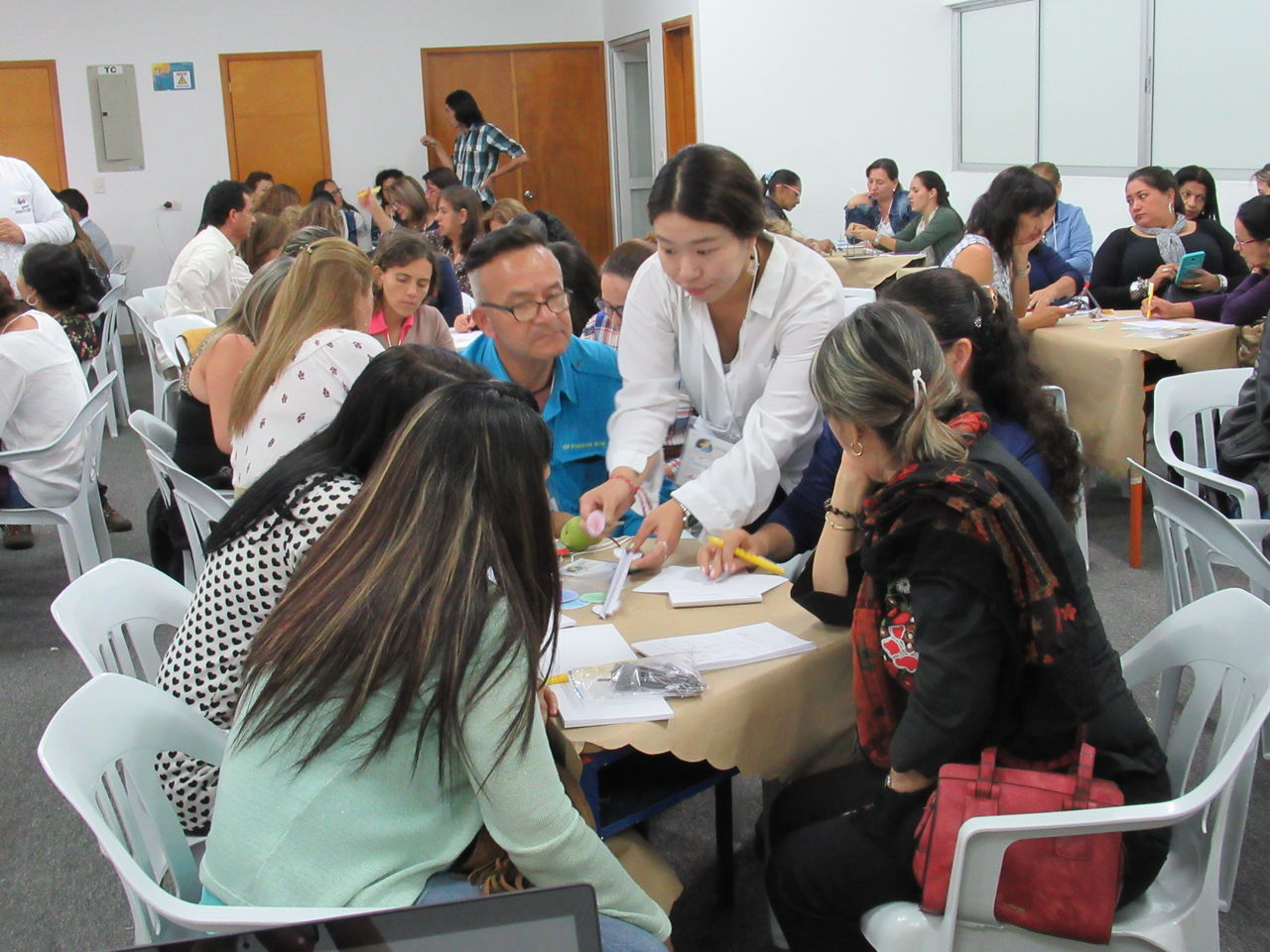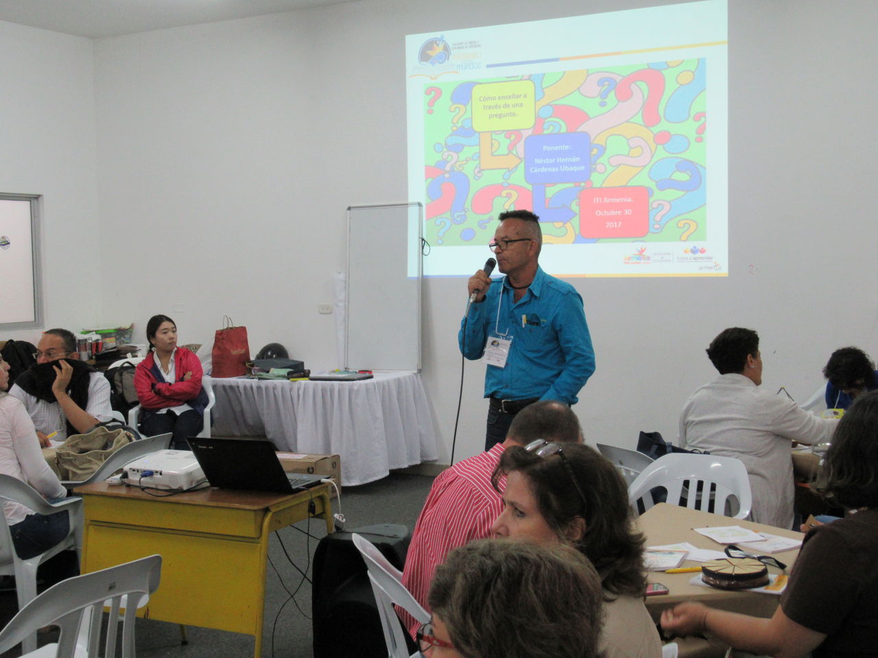 正門から続く通路を奥に入ったところに、カフェテリアがあって、その奥にコーヒーの研究棟があります。キンディオからリサラルダ、カルダス、アンティオキアまで続くコーヒー地帯にあるSENAの中で中心的な役割を果たしているのがアルメニアのSENAコーヒー部門です。向こうに見える建物の1階右側入ってすぐの会場で、翌日コーヒー生産者や従事者、研究者対象の研修会があるというので、2日続けてSENAに通うことになりました。