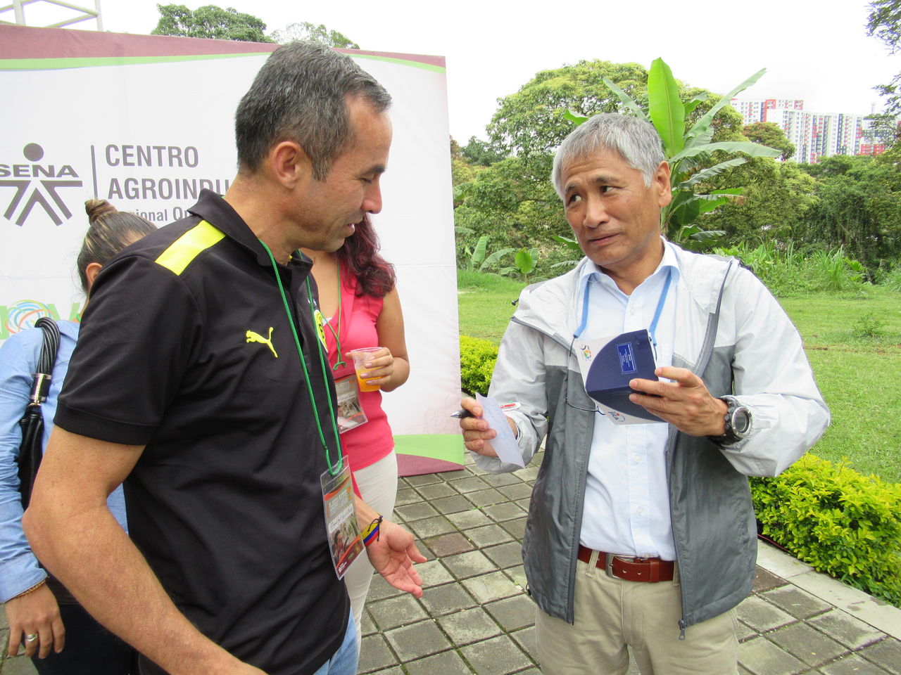 発表終了後に、研修に参加していたマリア・デル・カルメンさんと。彼女は日系三世で、ボゴタの近くにコーヒー農園を持っていて、生産向上のために知識を得たいと、今回足を運んだのだそうです。