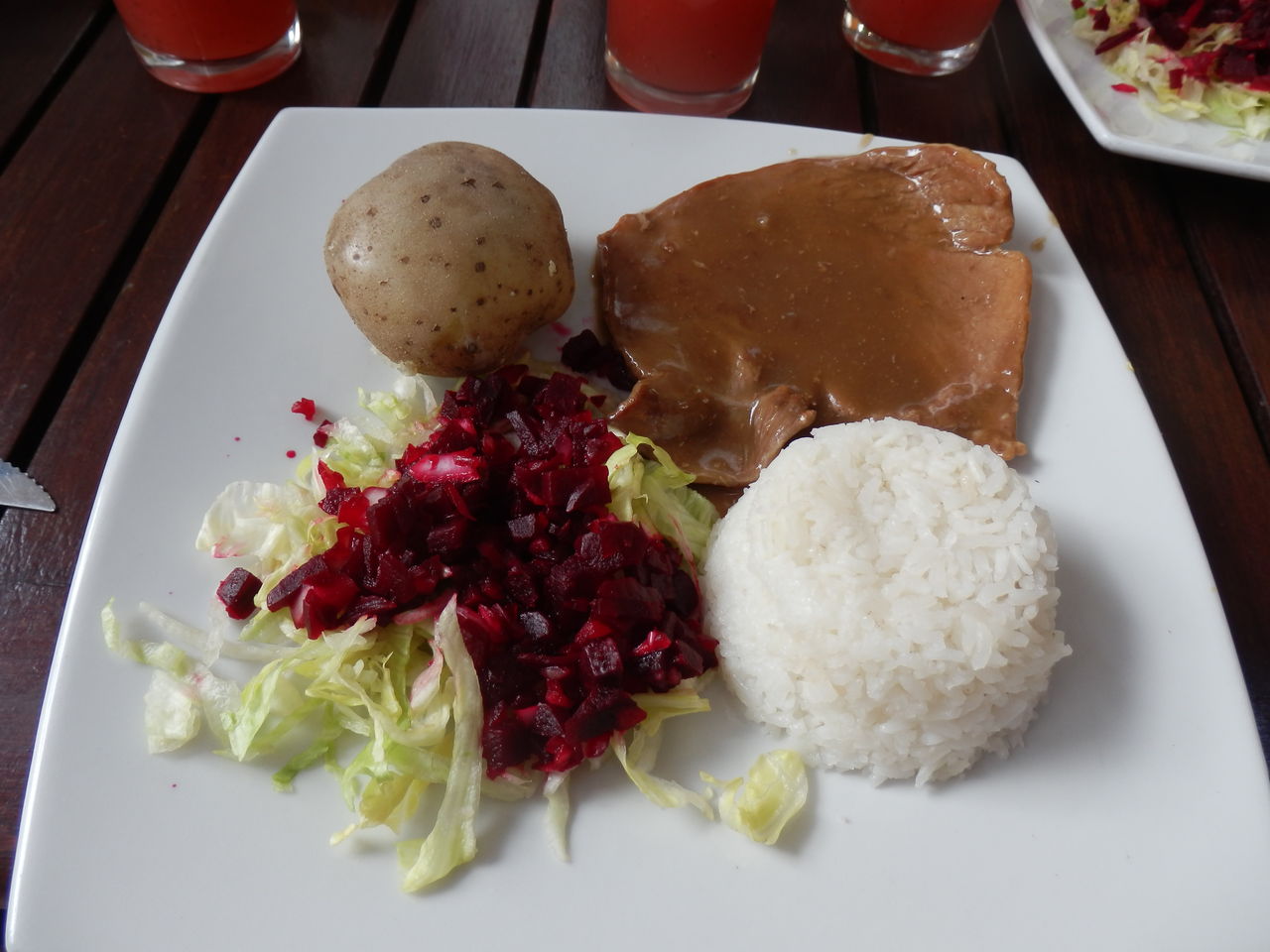 そうそう、大学の正門前には、文具屋さんや学生向けの安いレストランが並んでいて、レストランでは定食(例えば、ご飯+肉+付け合わせの野菜+ジュース)が5000~6000ペソで食べられます。日本円だと200円弱で、ハンパない量です。こちらはお昼がメイン。お昼にこれだけ食べると夜はそんなに食べられません。