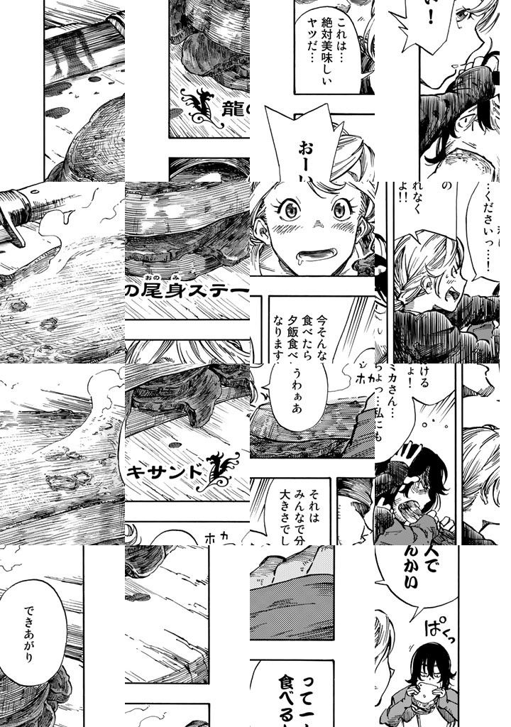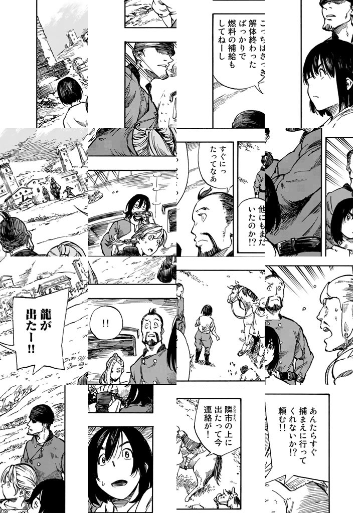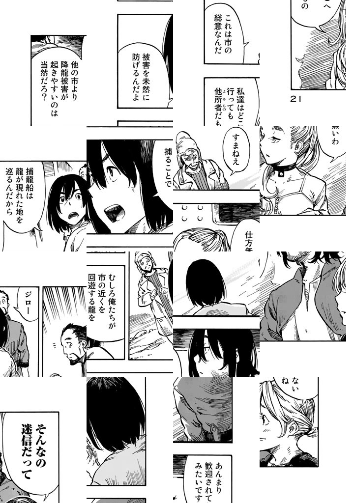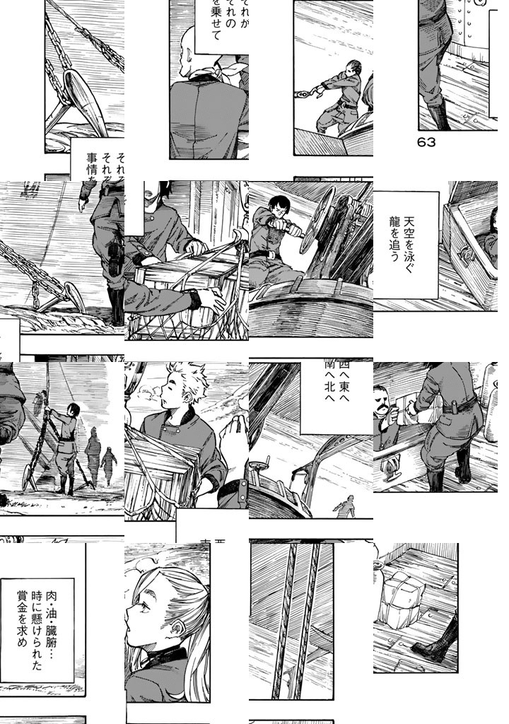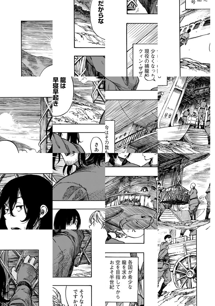 龍を追って、世界の空を往く捕龍船『クィン・ザザ号』。大物を捕まえれば一獲千金、獲りたての肉も食べ放題。でも、失敗したらもちろんお陀仏。空と龍に魅せられた乗組員たちの大冒険の旅&世界グルメ紀行!