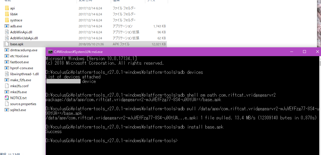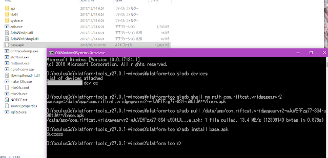 - oculusGoへadbコマンドでインストール