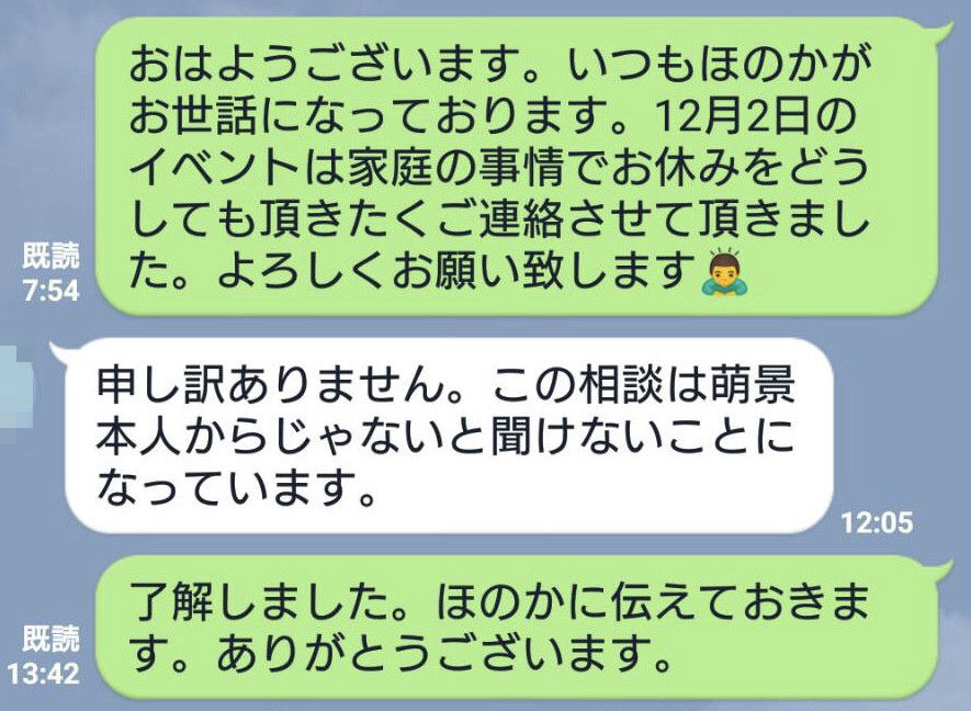 親がラインのメッセージで仕事の話するか?