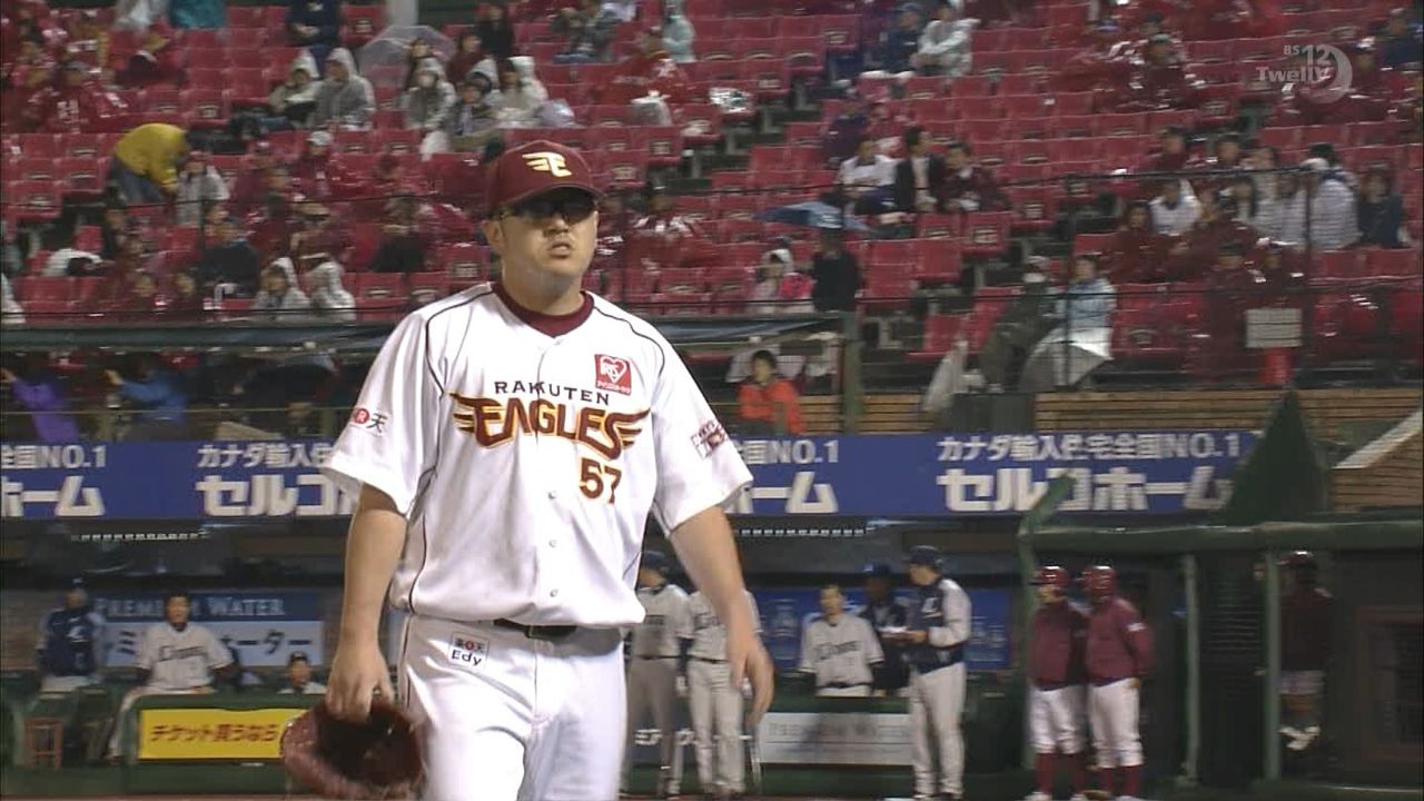 5回裏は大石が無失点に抑え、6回表 楽天投手交代 加藤大登板