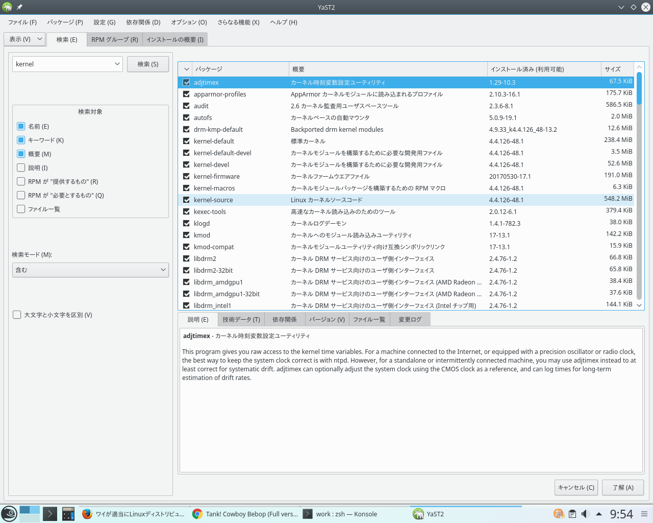 後は他のrpm系ディストリビューションと同じ感じやからFedoraとかに慣れとる人間やったら全く苦なく操作できるやで