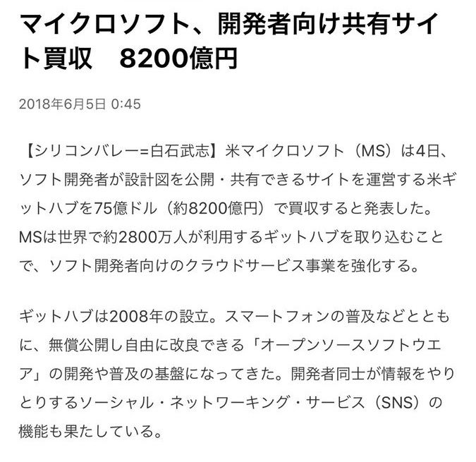 2018年06月05日 日本経済新聞、マイクロソフトが買収の「GitHub」の説明に苦慮 カテゴリ:日本経済新聞・四季報・TV・CM・広告 ・「設計図共有サイト」 ・「開発者向け共有サイト」 プリントゴッコ ハイメッシュマスター 理想科学http://stockcharts.com/h-sc/ui?s=MSFT スポンサーリンク コメント コメント一覧 1. 全力で名無しさん 2018年06月05日 14:46 ID:OqkGheQx0 土人ジャッピュがよくわかる珍事w 2. 全力で名無しさん 2018年06月05日 14:50 ID:sLoCoMgq0 ソースコードでソースを売ってる食品系が上がる説好き 3. 全力で名無しさん 2018年06月05日 14:50 ID:6inke8C20 いやいや、GitHubは日記アプリだろって中国の友達が言ってた。 4. 全力で名無しさん 2018年06月05日 14:54 ID:knB7tHKU0 へー。管理人は設計図共有サイトのことを知ってたのか。 5. 全力で名無しさん 2018年06月05日 14:56 ID:38j0bvFW0 ASKAが前に言ってた謎の組織だろ ついに明るみに出てしまったのか 6. 全力で名無しさん 2018年06月05日 14:58 ID:ZyIE7j7m0 ずっと「ジットハブ」だと思ってました 7. 全力で名無しさん 2018年06月05日 14:58 ID:3r3DSSQ80 IT界隈の自分が知ってることはみんな知ってて当然、知らなければマウントとるっていう厄介オタクみたいな人たちが本職でも多いのってなんでなの 8. 全力で名無しさん 2018年06月05日 15:00 ID:aDfvTVQZ0 まあ新聞って知らない人のための物だしな こんなことでマウントとってるパソコンの大先生のほうが無様に見える 9. 全力で名無しさん 2018年06月05日 15:02 ID:ud2xUCuC0 今はググッただけの知識で語ると恥かくだけだろ。 10. 全力で名無しさん 2018年06月05日 15:03 ID:6inke8C20 設計図共有サイトをバカにしてる人はGitHubの初心者だと思うよ。ディープな利用者は、出版前の本の下書きとか、日記とか、図面だとか上げてるし。 履歴管理したいものはなんでもアリ。 11. 全力で名無しさん 2018年06月05日 15:04 ID:sZ6RQr.R0 読者も旧産業のおっさん層が多いからしょうがないよね 12. 全力で名無しさん 2018年06月05日 15:04 ID:vPNfLvwA0 CVSすら使ったことない連中がドヤ顔してるんだろうと 13. 全力で名無しさん 2018年06月05日 15:08 ID:CIfbPL4Z0 なんか最近時価総額高すぎだよなどれも。 ブルームバーグによると2016年のギットハブの売上高は9800万ドル、利益は6600万ドルの『赤字』。 9か月もの間、ギットハブにはCEOが居らず、そのポストは現在空席。 14. 全力で名無しさん 2018年06月05日 15:10 ID:NIpF.oB30 OS = 基本ソフト アプリケーション = 簡易言語 この謎の言葉からすれば、 設計図共有サイトもさもありなん。 聞いても何のことやらさっぱりわからんが。 15. 全力で名無しさん 2018年06月05日 15:15 ID:.INIEEgD0 算符共有って書こう 16. 全力で名無しさん 2018年06月05日 15:15 ID:iyXTr7Tq0 プリントゴッコのマスターがわからん 17. 全力で名無しさん 2018年06月05日 15:17 ID:.INIEEgD0 そのうちソースコードは知ってて新聞を知らない人種が増えてくるよ 18. 全力で名無しさん 2018年06月05日 15:24 ID:vLNVE5qM0 知の共有に価値があるとGPLで提供しちゃう人々を、 知の独占で金儲けをしてるマスメディアには未来永劫理解できない。 19. 全力で名無しさん 2018年06月05日 15:25 ID:y8llEALy0 日経良く読む(読まない) 20. 全力で名無しさん 2018年06月05日 15:25 ID:9.hd.yA20 公開したプログラムの管理団体、 ホームページ上で、条件付き無償利用ライセンスのプログラムの配布と更新を行なっている組織。 うーん、他職の営業マンに伝わるか微妙だなぁ。 21. 全力で名無しさん 2018年06月05日 15:29 ID:9.hd.yA20 これを利用すると、通信などの共通のプログラムを開発するコストが下がる とか、ソフト開発における競争で疲弊個所が軽減するとか、どうなるか書いたらいい。 22. 全力で名無しさん 2018年06月05日 15:34 ID:38RGxdFI0 ポエム共有サイトでいいだろ 23. 全力で名無しさん 2018年06月05日 15:49 ID:b5.Y2InV0 いやいや、論点おかしいだろw 「ソースコードが何か分からない読者が多いから別の言葉にした」って、 その「何か分からない読者」に分かるよう説明するのが記者の役目だろ? 紙媒体ならともかく、WEBニュースに文字数制限なんてないんだから、 ※つけといて下部に説明載せれば済む話じゃん。 っていうかそうしないと、読者はいつまでたっても学習できなくて、 毎回記者によって違う珍妙な訳語にブチ当たる羽目になる…… っていうか、今まさになってるじゃん。 経済用語だったら説明つけるのに、なぜIT用語ではできない? 記者が理解できていない以外の理由があるとは、思えないぞ。 24. 全力で名無しさん 2018年06月05日 15:59 ID:P2w15vi.0 新株で交換したけどMSの株価上がったから実質0ドルらしいね 25. 全力で名無しさん 2018年06月05日 16:03 ID:.OFsUuE10 CVSを使ったことないやつは多そう 26. 全力で名無しさん 2018年06月05日 16:13 ID:0QU0z.3m0 あれでしょ抹茶味とかあるやつでしょ コメントフォーム 名前 コメント 評価する リセット リセット 顔 星 投稿する 情報を記憶