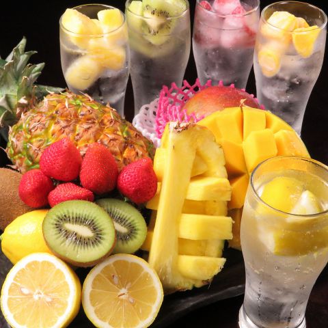 凍結したフルーツが入った最強サワー!レモン、いちご、パイン、マンゴー、キウイ…これからの暑い時期に最適です!セレブ飲み放題で堪能出来ます!