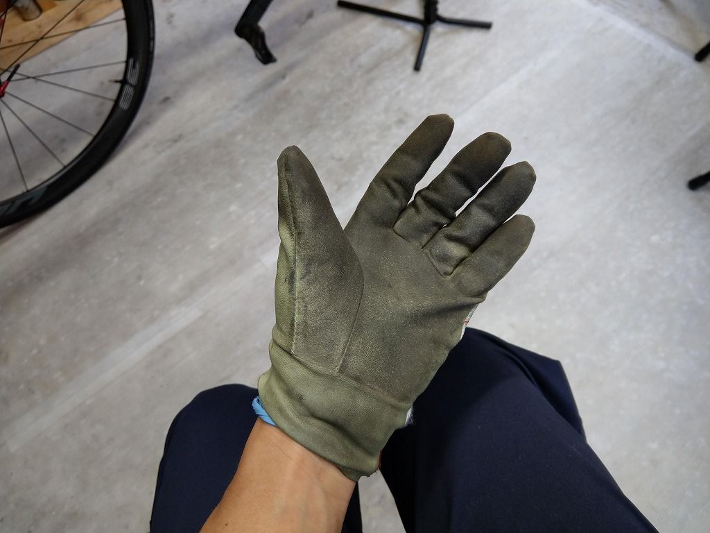 安全のためにグローブ着用で実験開始です。