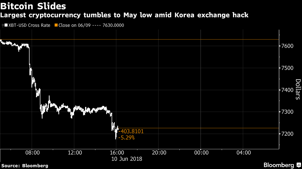 ビットコインが3カ月で最大の下げ-韓国の交換業者がハッキング被害