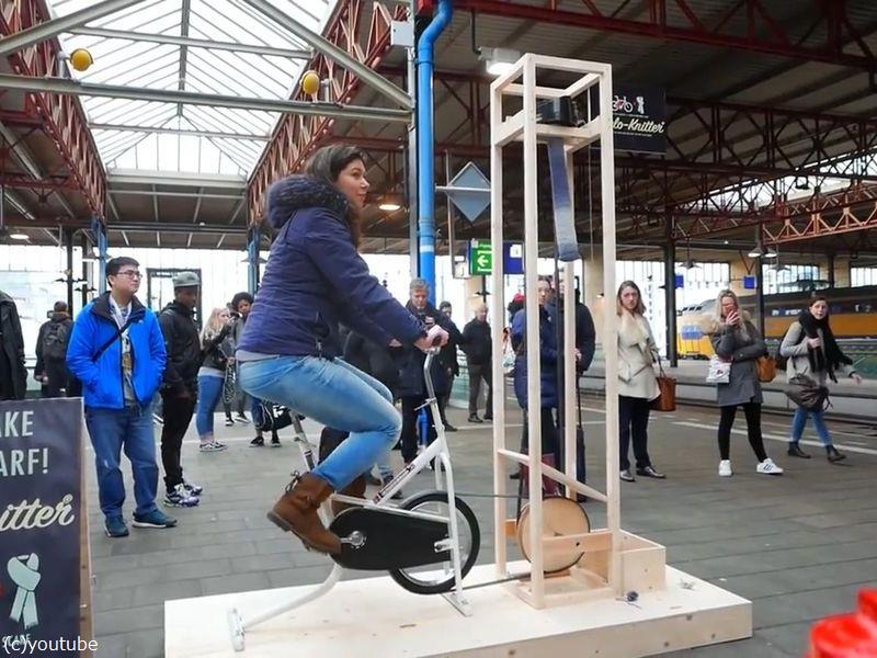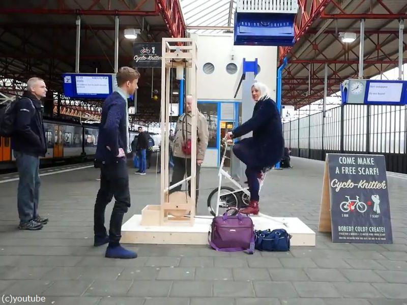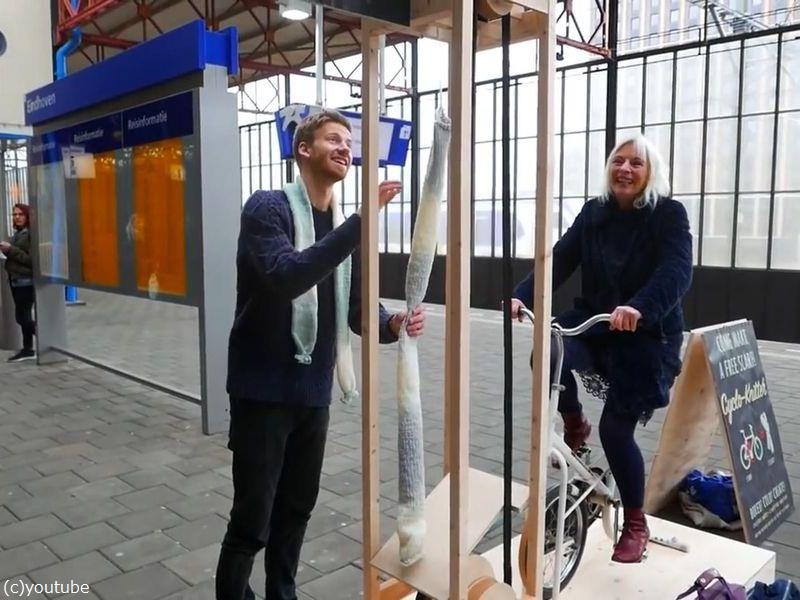●これをジムにでも置くと、ホームレス向けへのマフラーができる。エクササイズとチャリティだ。