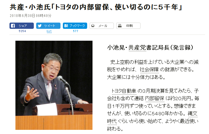 これを今も党員からの寄付と言い張る連中なのだから内部留保云々の話も一般人との会話すら成り立たないわ。