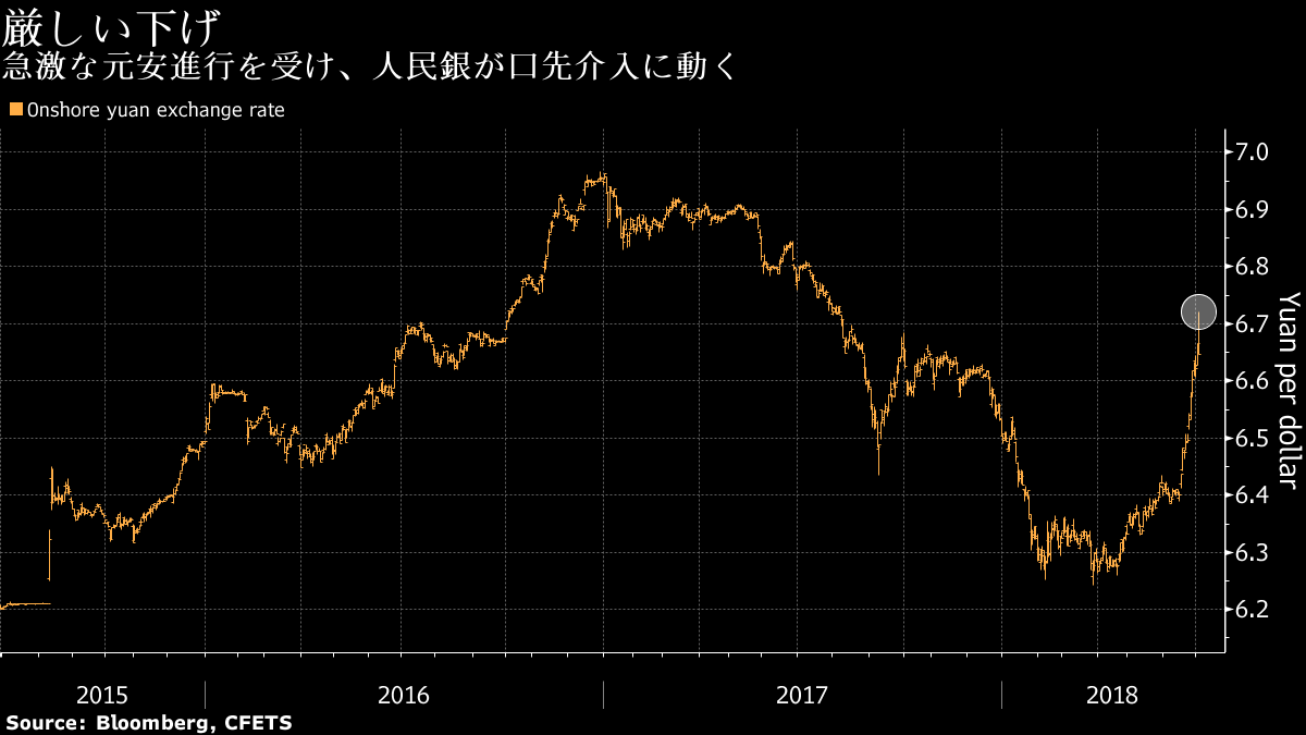 原題:China Verbally Props Up the Yuan as Trade and Growth Fears Spike(抜粋)