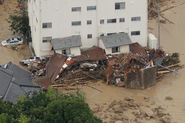 砂に押し流された家屋。7月7日午後、広島市安佐北区