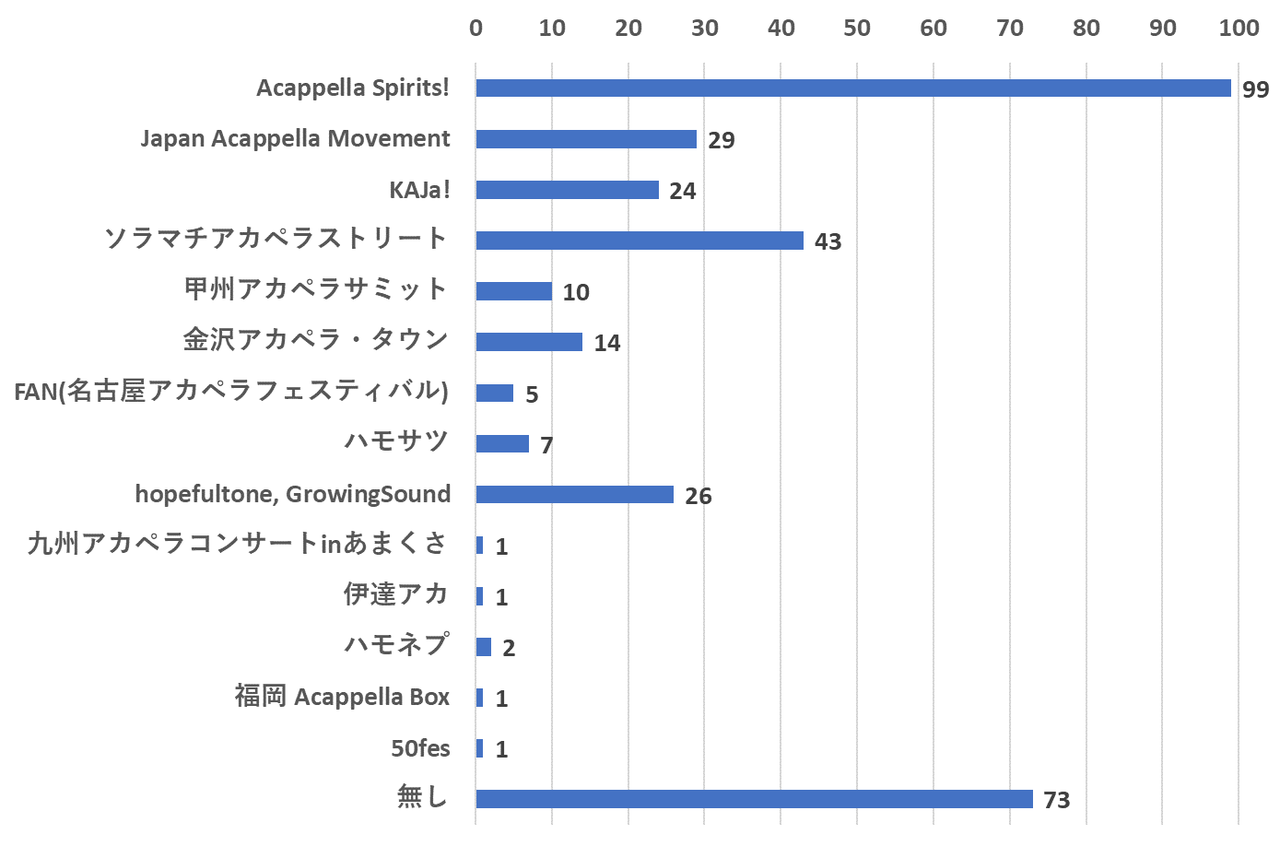 >どちらかと言えば否定的だ:音楽的である/なしに関わっておらず、ネズミ講のような仕組みがあるように感じる。また、 楽譜等権利的にも怪しいことをやっていながら、あたかも当然の権利であるように振舞っているイベンターが多い。このまま続くとアカペライベント自体に規制がかかりそうで、それは避けるべきであると思うから。(4年目)