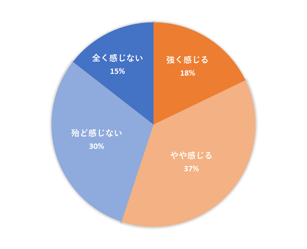 【強く感じる/やや感じる/殆ど感じない/全く感じない】