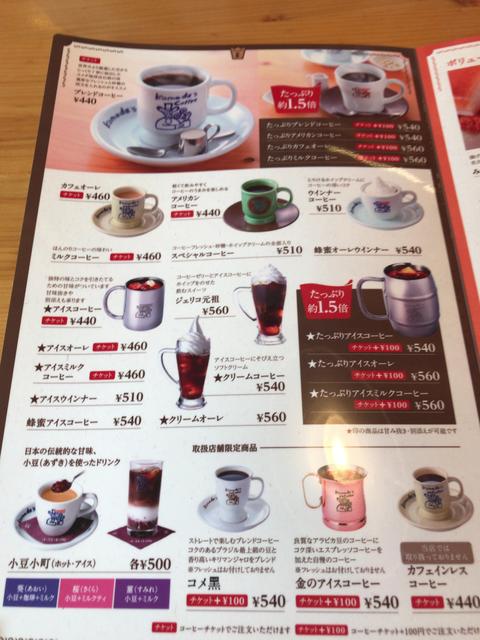 更にチケットに+100円を足すとこれら対象のコーヒーのたっぷり1.5倍サイズやコメ黒、金のアイスコーヒーも頼むことができる。コーヒーチケットはコーヒー類以外でも使用できる。440円の紅茶(レモン・ミルク・ストレート)や460円のアイスティー(レモン・ミルク・ストレート)、ソフトドリンクだと440円のミルク、メロンソーダ、コーラ、カルピスが対象となる。