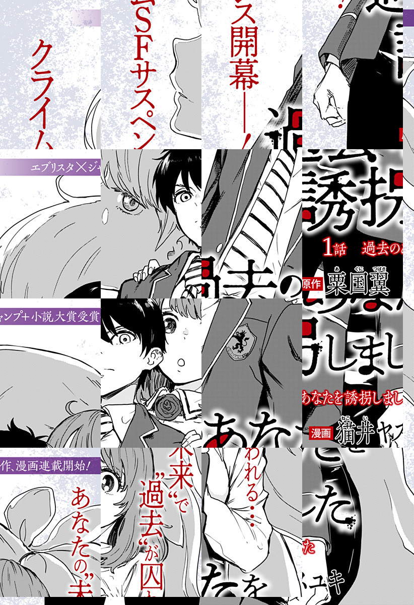 <隔週月曜更新>※3話までは毎週更新!月島友孝は複雑な過去を抱えた同居人ミカと静かに暮らしていた。善良で平和な日々——だがある日、謎の集団に拉致されてしまう。彼らは通告する。お前は『未来』の犯罪者の『過去』であり、我々は許さない。だから「過去のあなたを誘拐しました」と——。〝未来″の罪が〝過去″の自分に降り注ぐ!?SFクライムサスペンス開幕!