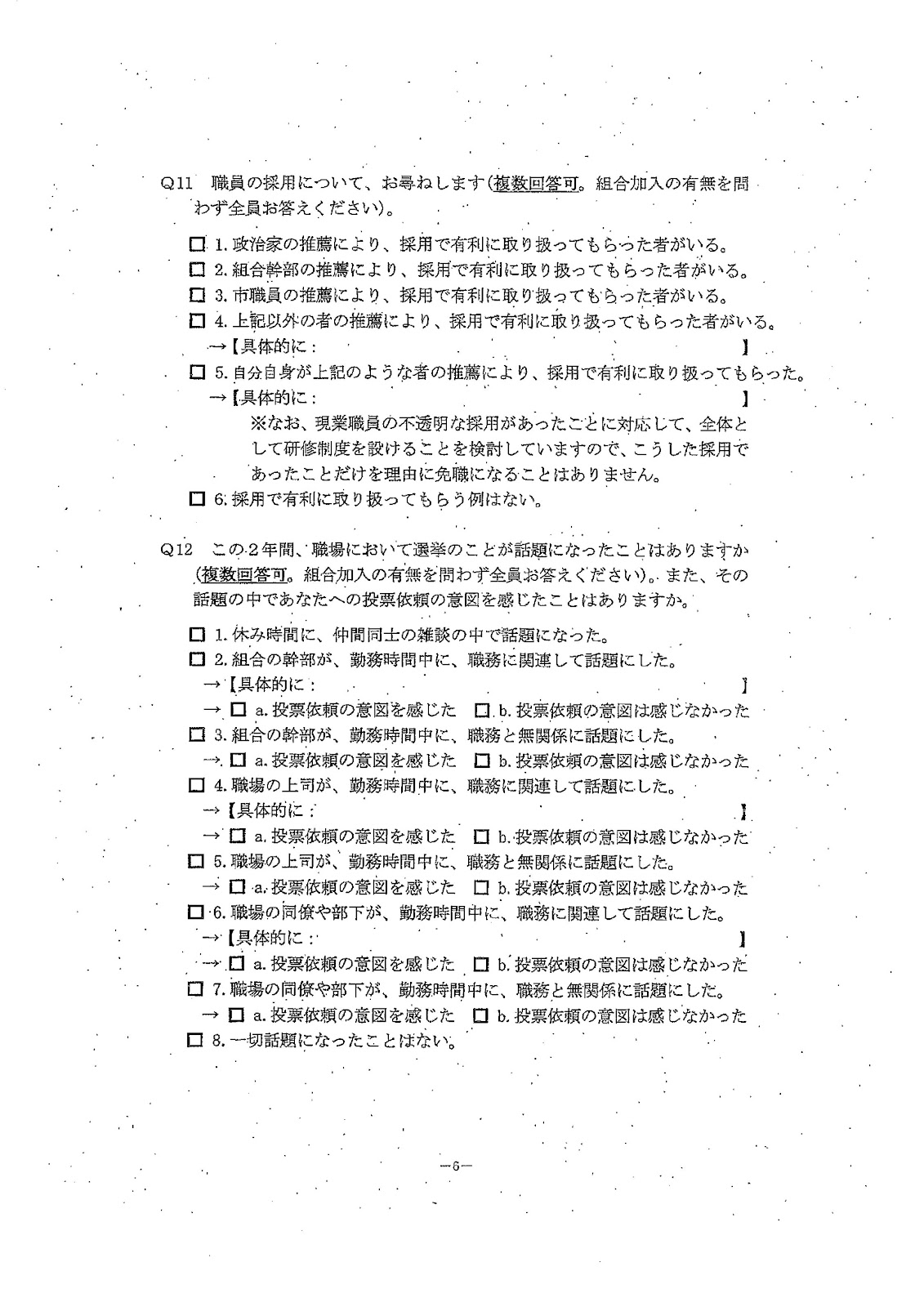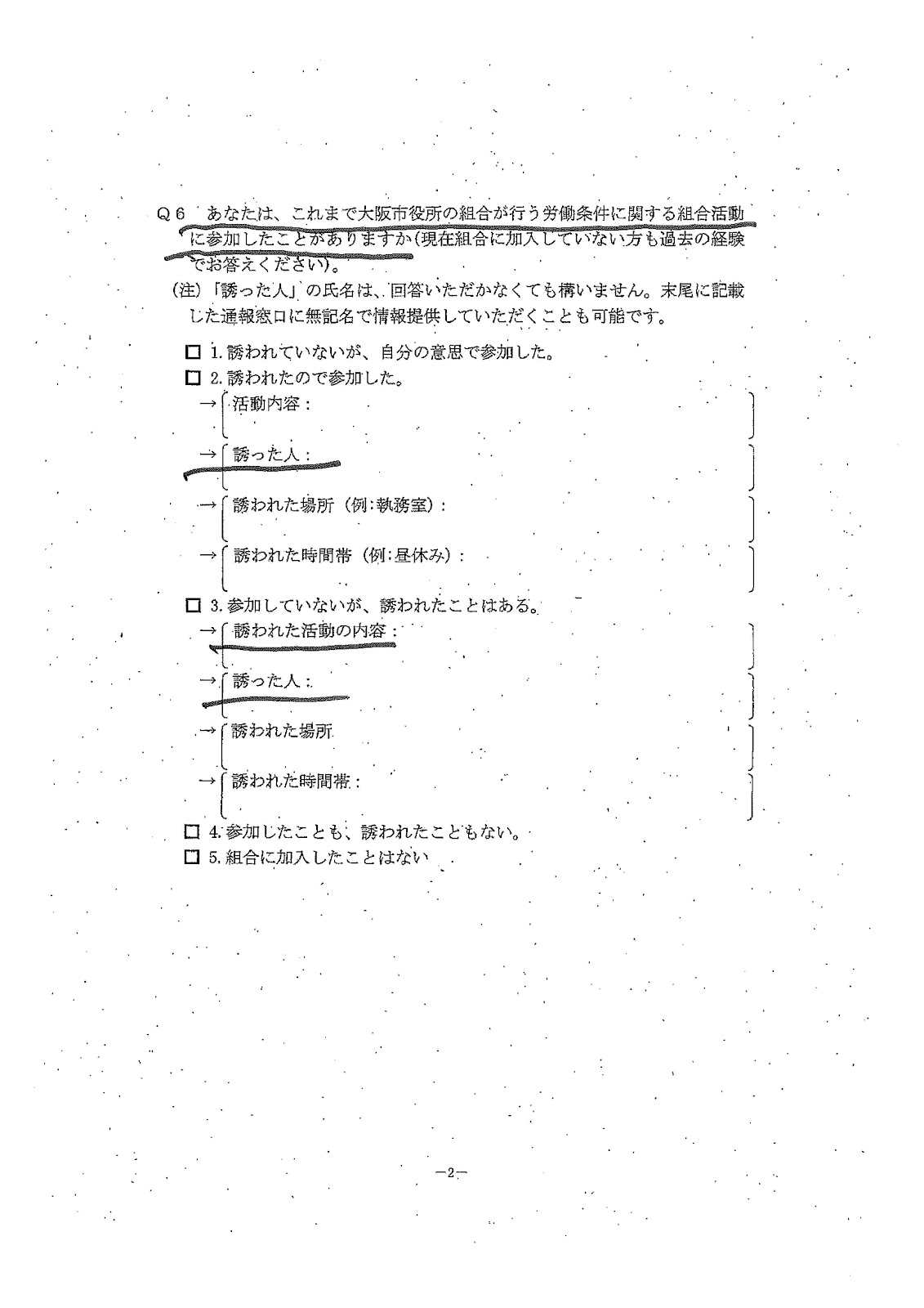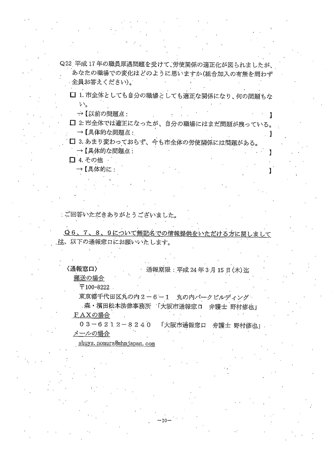大阪弁護士会・その後日本弁護士会会長声明が出されて「憲法」「労働基準法」違反の、不当労働行為にも当たる、直ちに中止をと。また連日市役所の前でいろんな団体、市民有志 がびらまきをしましたが。このアンケートに彼の本質が見えます。