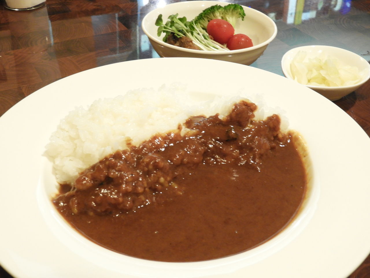 タンドリー風に味付けされたチキンとサラダの小鉢が付いてきます。