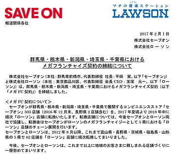 しかし2017年2月1日にローソンとのメガフランチャイズ契約の締結を発表。既存のセーブオンは2018年中までにローソンへと転換していくとしており、今回の全店舗閉店へとつながりました。