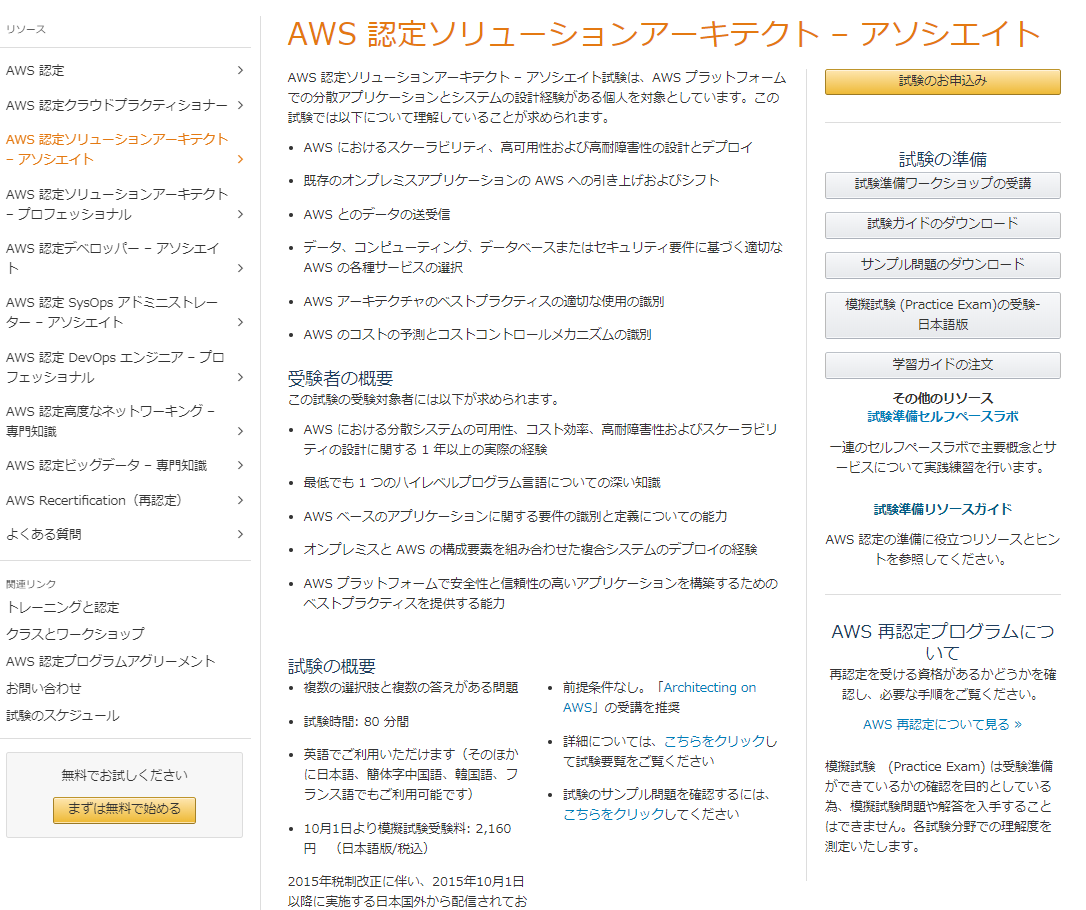 - AWS認定ソリューションアーキテクト-アソシエイト レベル別のおすすめ勉強法 2016/12版