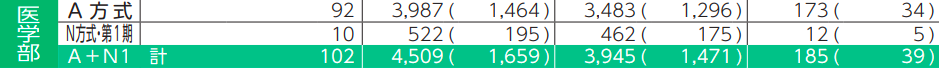 日本大学医学部の一般入試A方式のデータです。