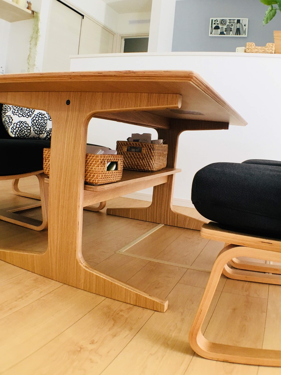 テーブル下に、板が一枚付いているだけでかなり便利です。