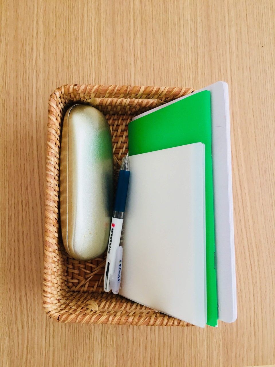 同じ場所にもう一つ、文房具とハズキルーペを入れています。