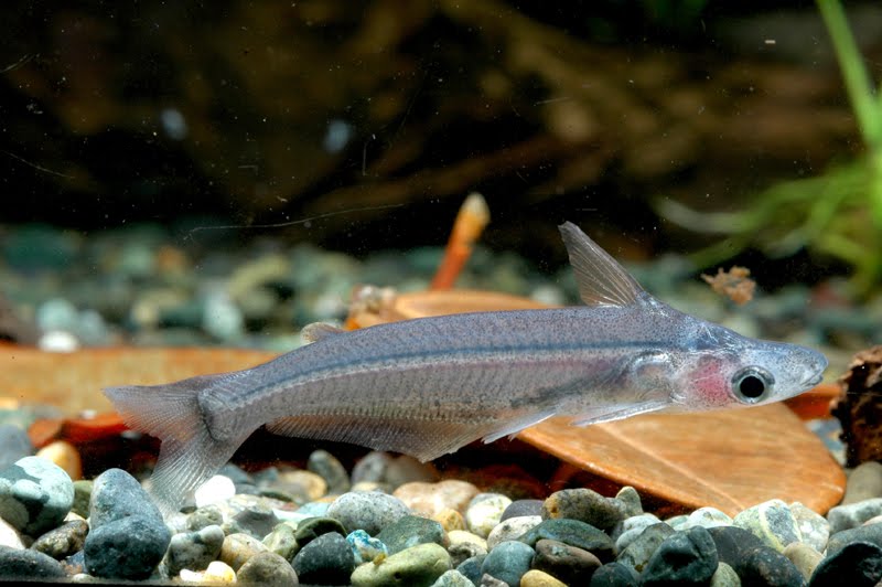 先說那隻玻璃虎鯨. 這條魚因為是Ageneiosus屬(和帝王虎鯨同一屬), 所以一開始讓我有一點疑慮: 這養得起來嗎? 原因是Ageneiosus屬的魚在白天通常都在睡覺, 晚上才四處亂游, 遇到什麼吃什麼. 也就是說白天睡覺時怕被打擾, 晚上吃東西又可能咬到其它魚, 所以和這類魚混養的魚最好是不要太好動. 不過這條魚又很小, 4-5cm的體型可能是Ageneiosus中最小的魚, 那麼牠要吃什麼呢? 今天看到實魚以後讓我安了一點心, 因為這條魚比起其它什麼條紋虎鯨或高背紫虎鯨活潑很多, 在中度的光照下也會群泳, 雖然說在取食上沒有雙黑尾小虎鯨或是大口藍鯨那麼主動, 但是丟紅蟲還是會吃的. 不過玻璃虎鯨的鑑定有一點小小的疑問. Eigenmann在1912年於其著作The freshwater fishes of British Guiana, including a study of the ecological grouping of species and the relation of the fauna of the plateau to that of the lowlands(全文下載)中描述了Tympanopleura piperata這條魚(=Ageneiosus piperatus). 其模式產地為蓋亞那的"Crab Falls"(位於Río Cuyuní, 古幽尼河). 但這個模式產地離秘魯有點遠(這次的魚由秘魯出口), 這大概也是為什麼鯰魚星球上把玻璃虎鯨標示為"類似piperatus"的原因.