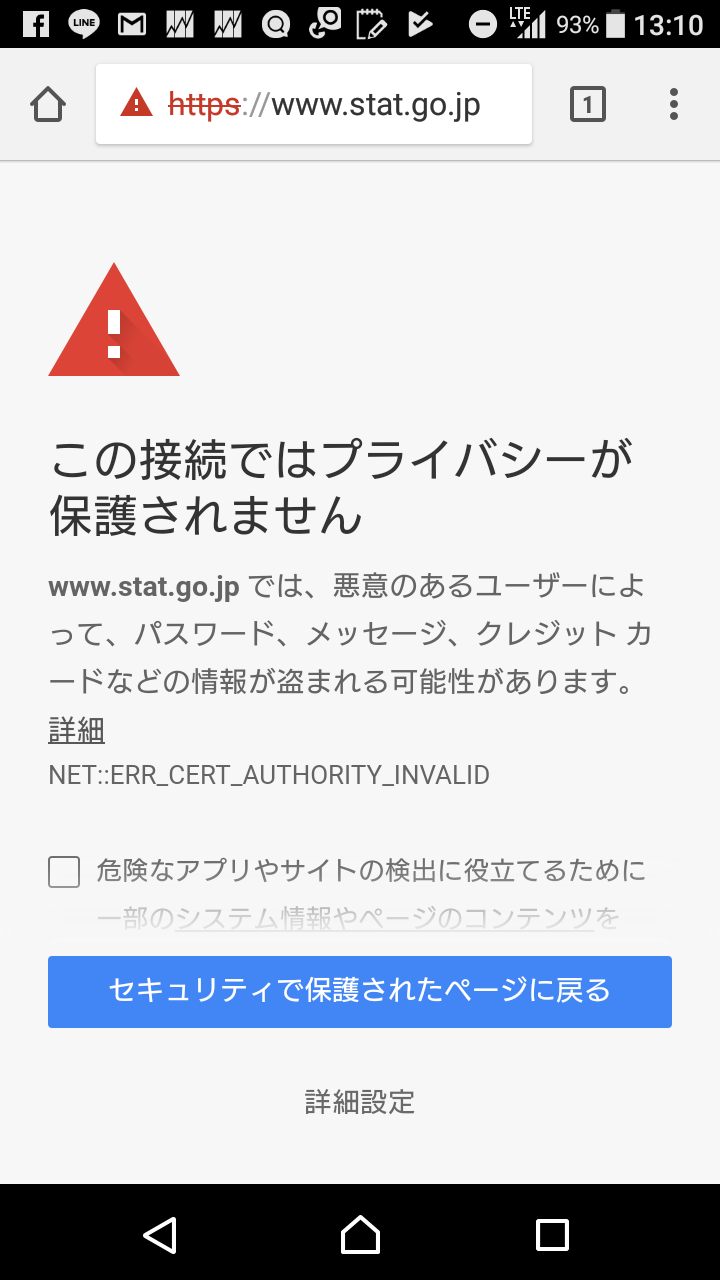 奇跡的に総務省統計局のサイトで警告が出ている画面キャプチャがありました。