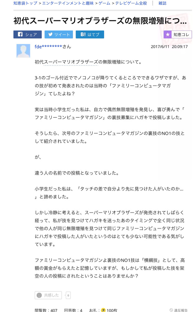 息子は「俺の親父マリオの裏技見つけてファミ通で賞取ったわw」って嘘ついてたわけか