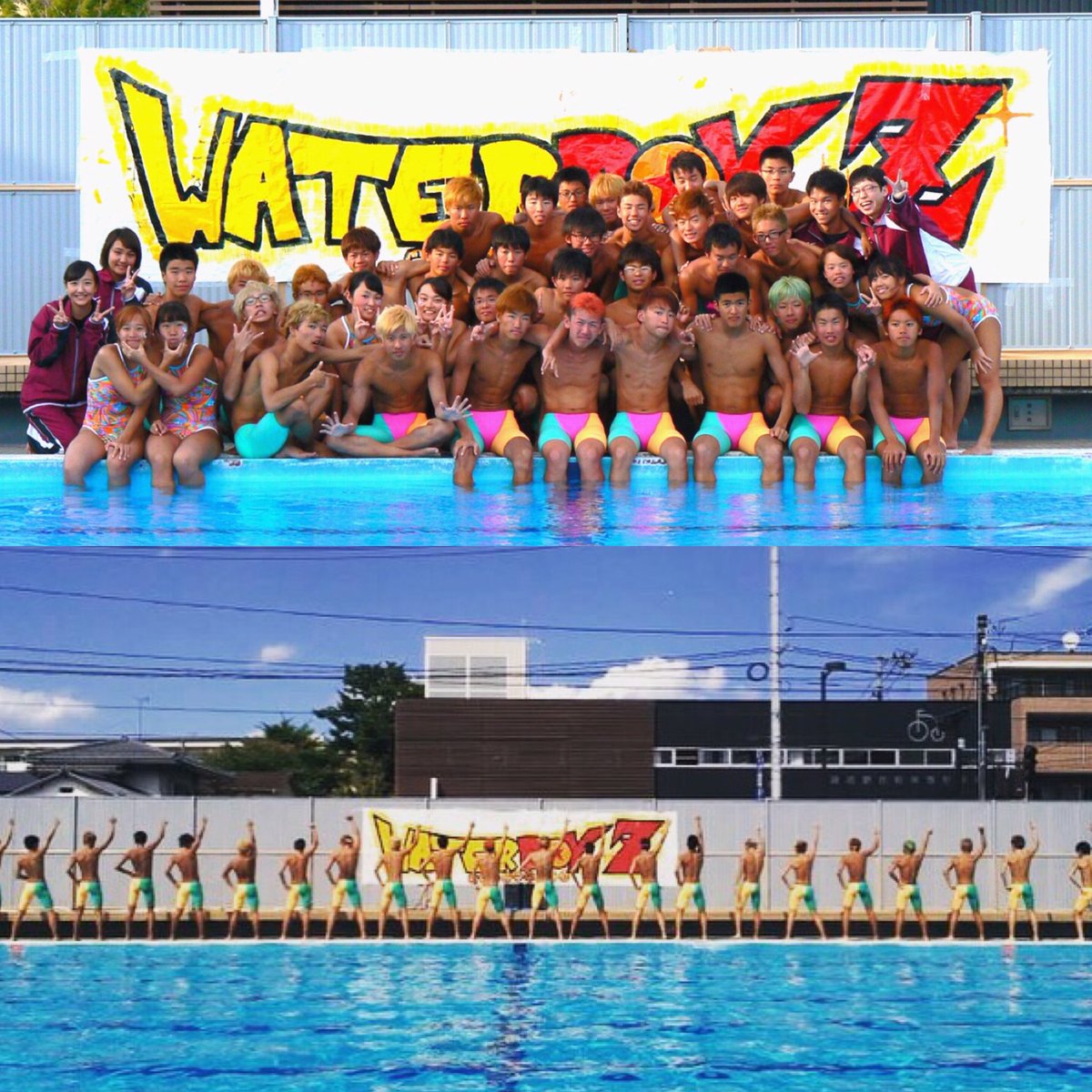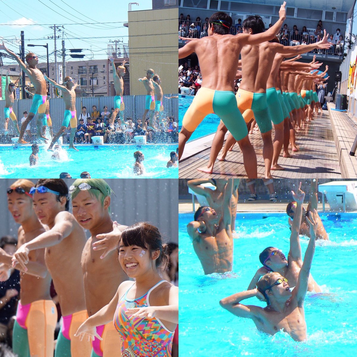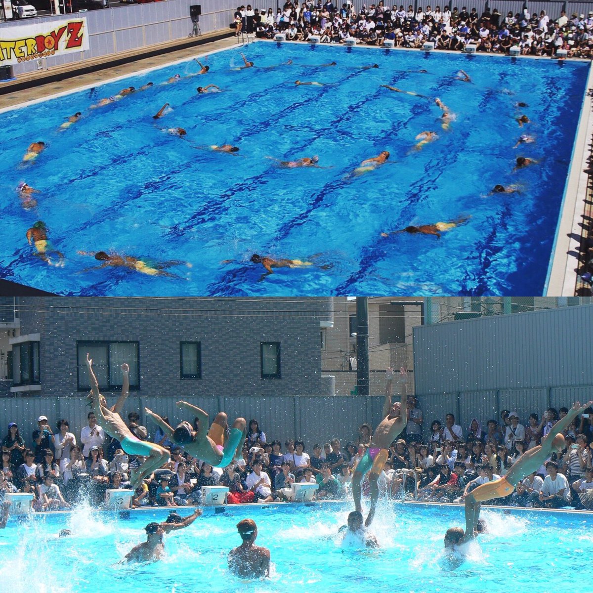 1.シンクロ飛び ウォーターボーイズ(以後WB)独特の入水方法。 仙台一高のWBの練習はこれの習得から始まるのである。 競泳の飛び込みとは全く異なるので水泳部とはいえ習得するのには時間を要する。 (良いは絶対に真似しないでね)pic.twitter.com/PmaI2DtUJn