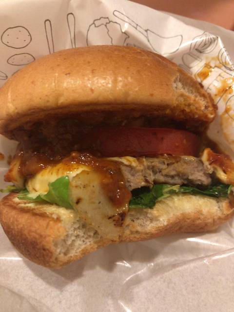 毎週金曜日のみ販売の特別なバーガー。ごちそうという名前の通り重量感にあふれ、チリソースの程良い辛味がクセになりそうな味で食欲が増すバーガーだ。よく炒められた玉ねぎ、焼きトマト、スライスチーズ、ハンバーガーパティはジューシー、あとはレタスがバンズの間に挟まっている。