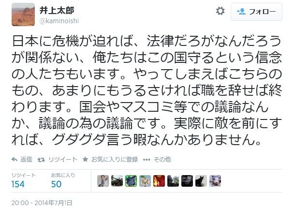 >>日本に危機が迫れば、法律だろうが何だろうが関係ない