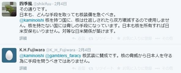 また、核武装をして核の脅威から身を守ろうという主張もあります。