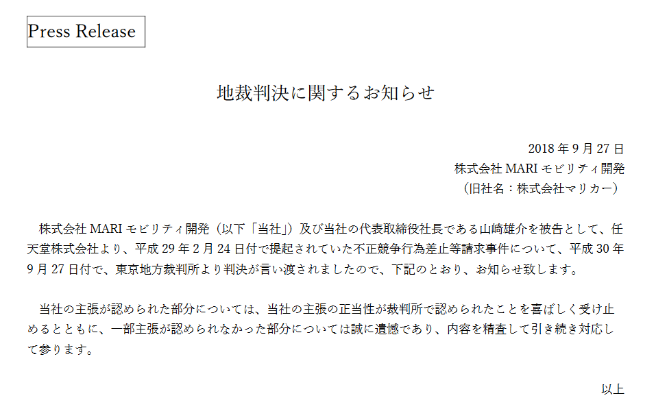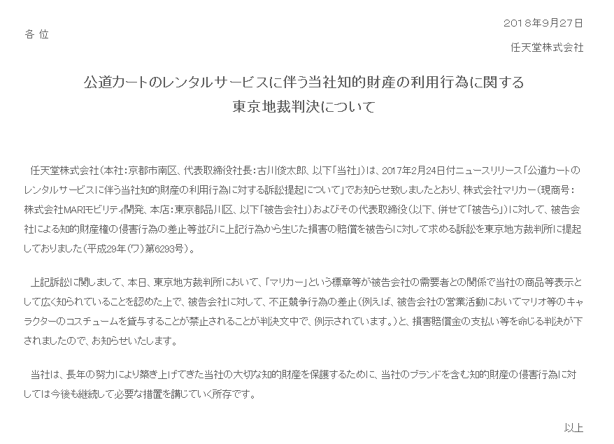 この件で腹立たしいのはマリカーはマリオカートのことじゃないからとかほざいた特許庁だよ