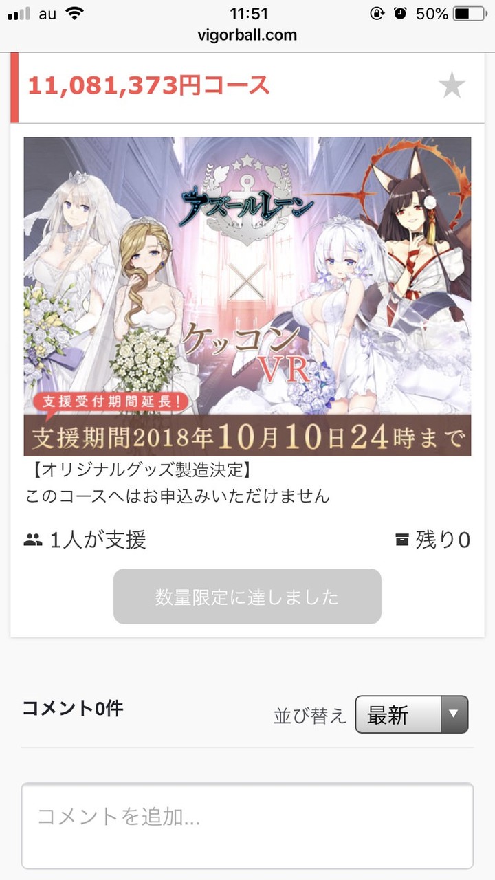『アズレン』ケッコンVR実現のためにクラウドファンディングやるぞ! → 金集まらず → 急遽ケッコンVRは開催中止でグッズのみ生産することに変更 → VRのために金出した人には返金なし?これは詐欺では?と話題に
