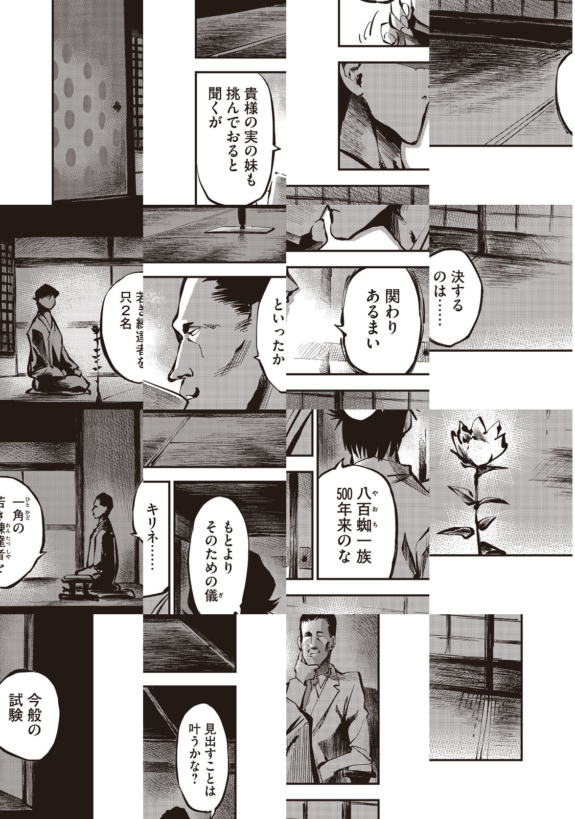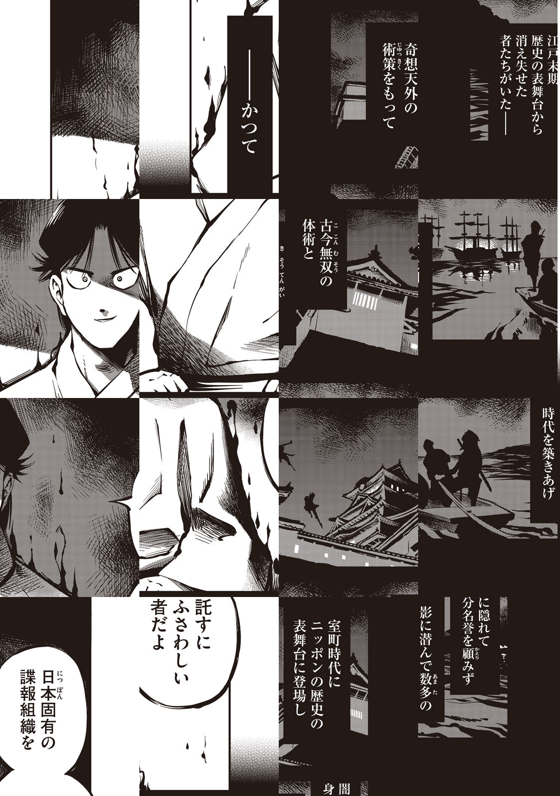 現代に忍者は生きている――。スパイ天国と称される我が国にあって、本当は世界最強の諜報集団が存在し、護国の柱となっているのをご存知だろうか? いわんや忍者のことである。「八百蜘」なる一族に生まれ育った少女・キリネは、とある「大会」に参加していた。その表向きの目的は、日本代表の忍者を選抜すること。しかしその実態は、四日以内に他の参加者を間引かなければ自身が絶命するという凄絶なるサヴァイバルであった。