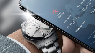 具体的にどうするのかというと、海外に行って現地時間に合わせるときはLonginesのアプリで現在地を探してスマートフォンを時計のフェイスにかざします。すると、スマホカメラのフラッシュから各国ごとに異なるパルスが発せられます。このパルスを、時計のフェイスの12の1の部分についているライトセンサーが読み取って自動的に時間を調節してくれるのだそうです。WiFiやBluetoothに接続する必要がないので、バッテリーも当然長持ち。交換は2〜3年毎といったところ。