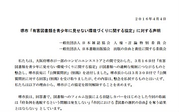 同学会は、有害図書指定の影響について、「自治体による有害図書指定は、公共図書館での収集や提供にも制限をもたらしかねず、また、性的な表現に関する研究の萎縮をも招きかねない」と主張。「研究を委縮させかねない、自治体による、こうした図書までを含む有害図書指定の拡大に、強い懸念と憂慮を表明し、反対するものである」と声明を結んでいます。