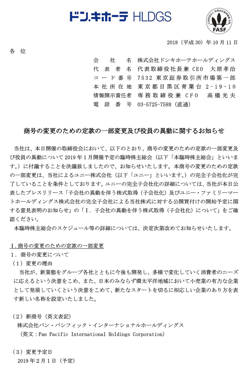 2018/10/11 08:00 ドンキホーテホールディングス