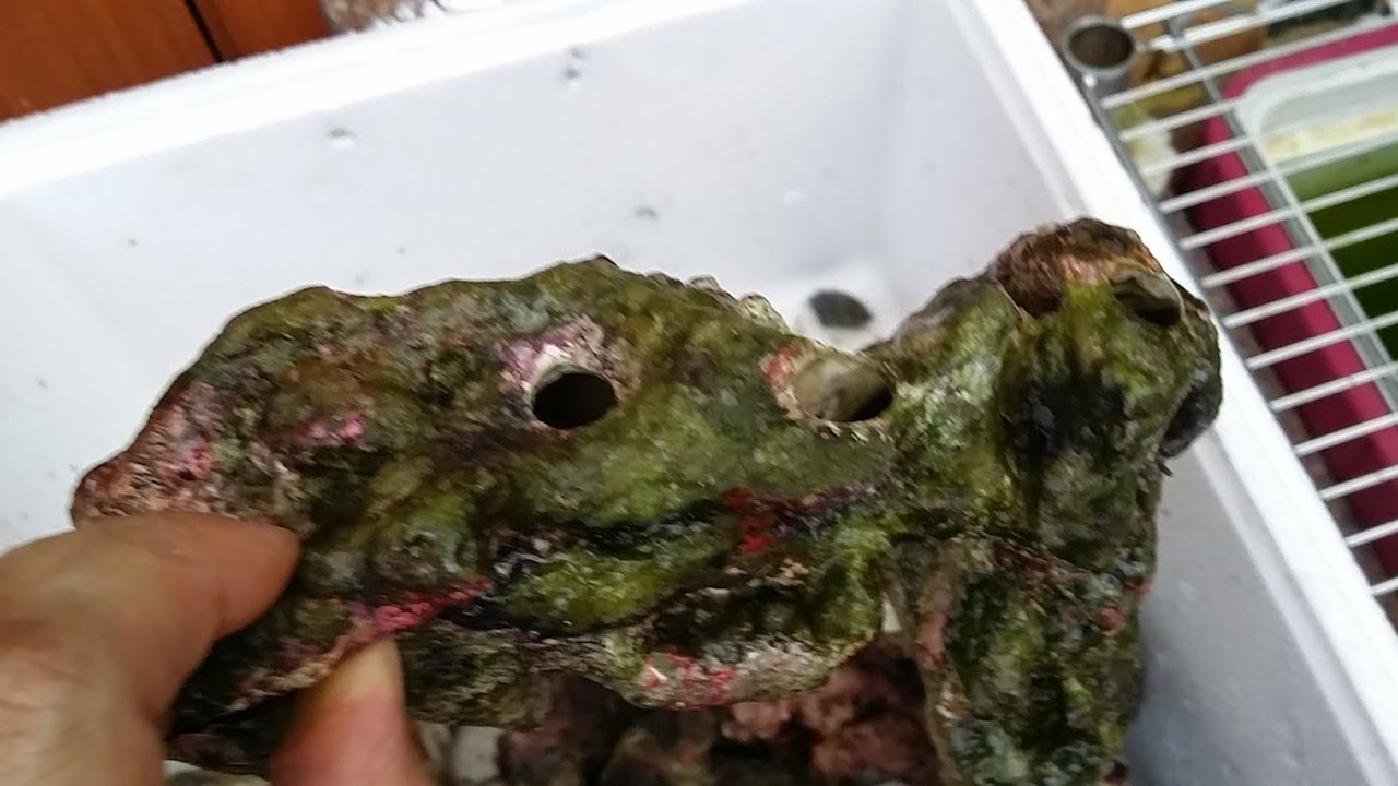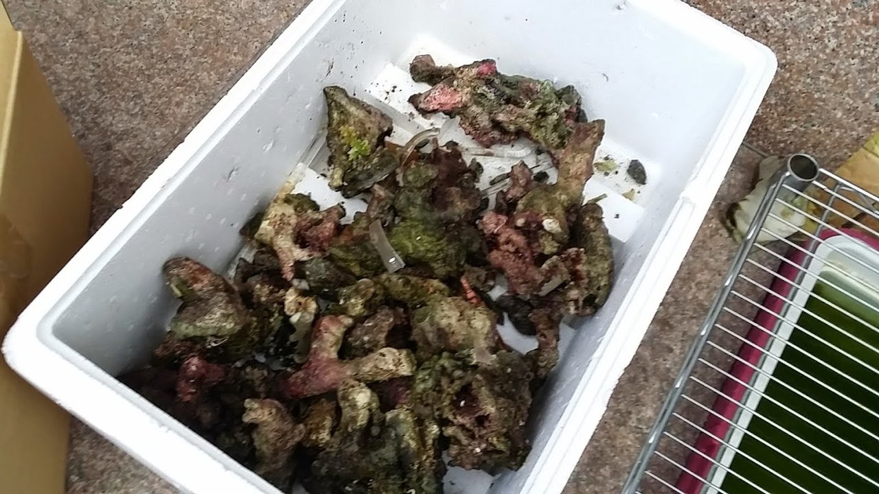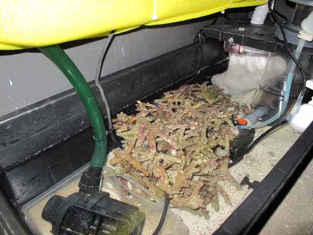 天然海水だけではバクテリアが足りないと思いライブロック(4キロ)をサンプに入れた。