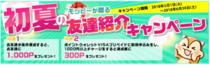 モッピーへ入会すると1,300Pが貰えます^^