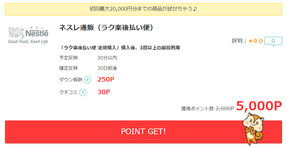 ネスレの注文の際に更に1手間加えることで5,000円分のポイントが手に入ります!!