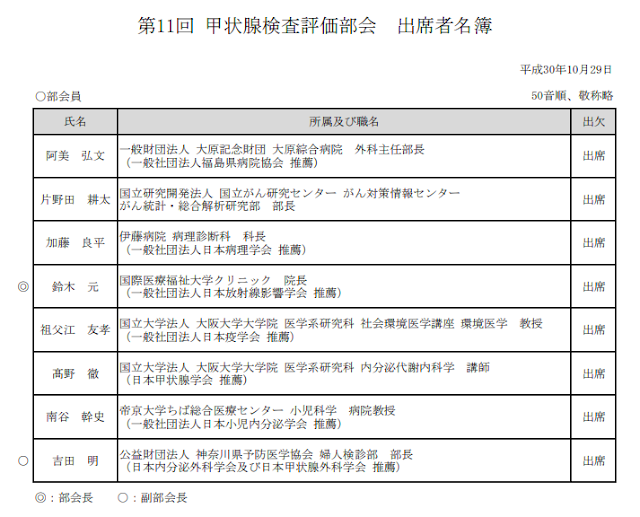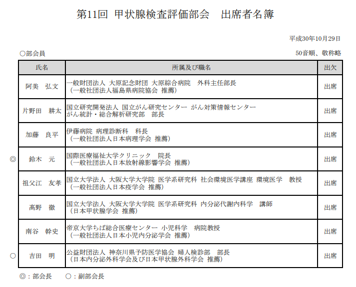 第11回甲状腺検査評価部会の全資料はこちらからアクセスでき、公式議事録も、後日、そのウェブページに掲載される。どうしても聞き取れないために空白となっている箇所については、公式議事録を参照願いたい。