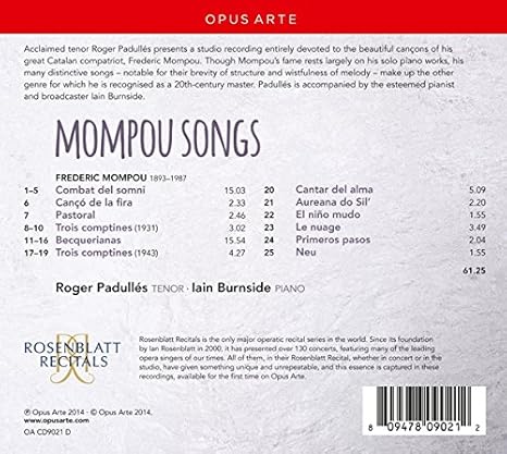 Mompou songs roger padulles iain burnside opus arte oacd music...