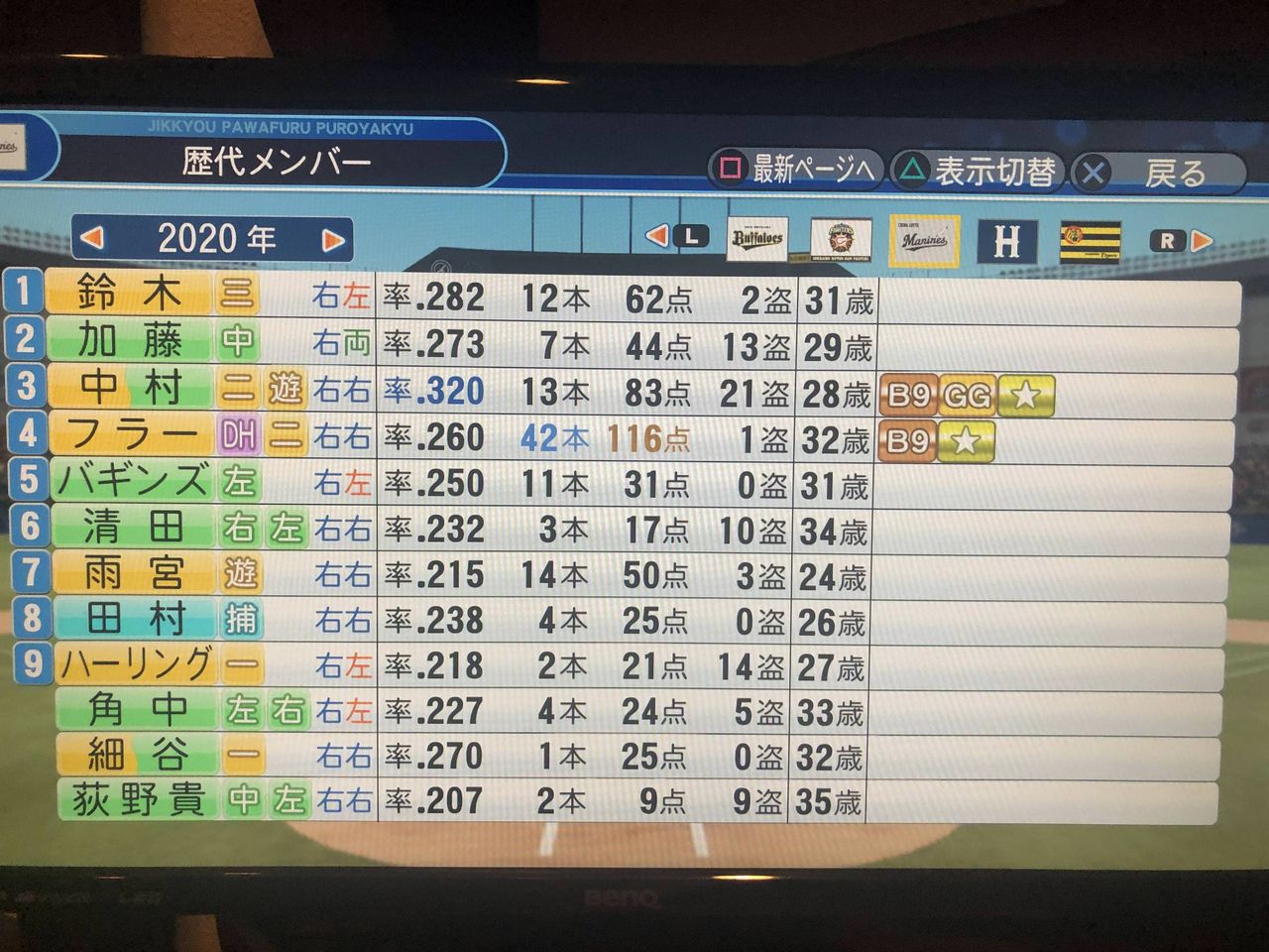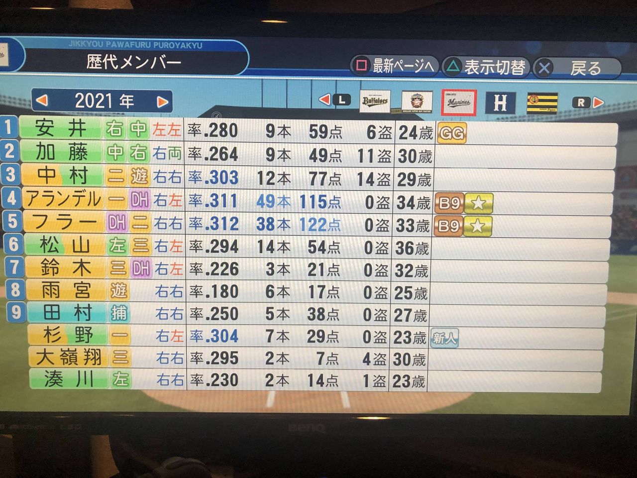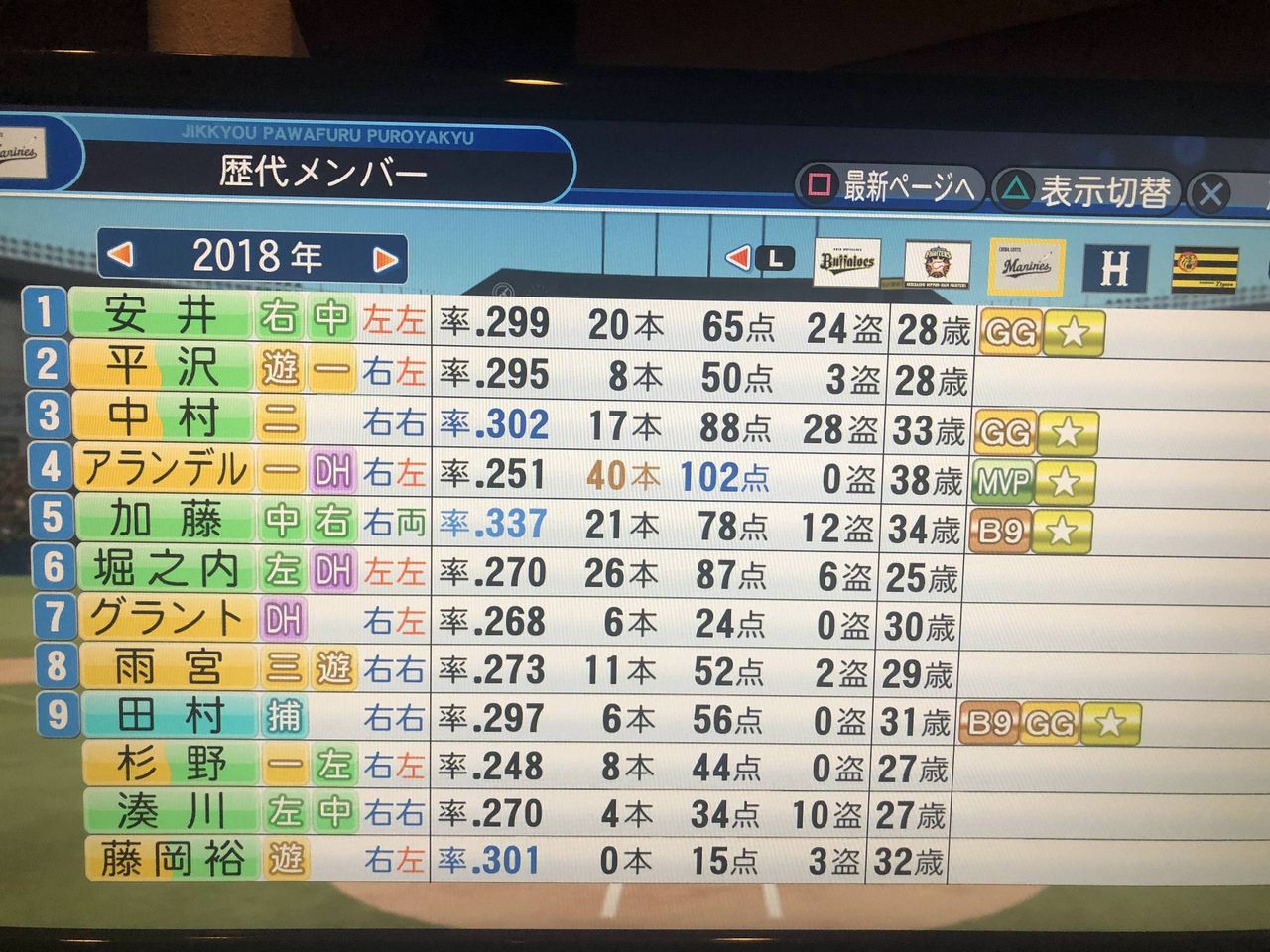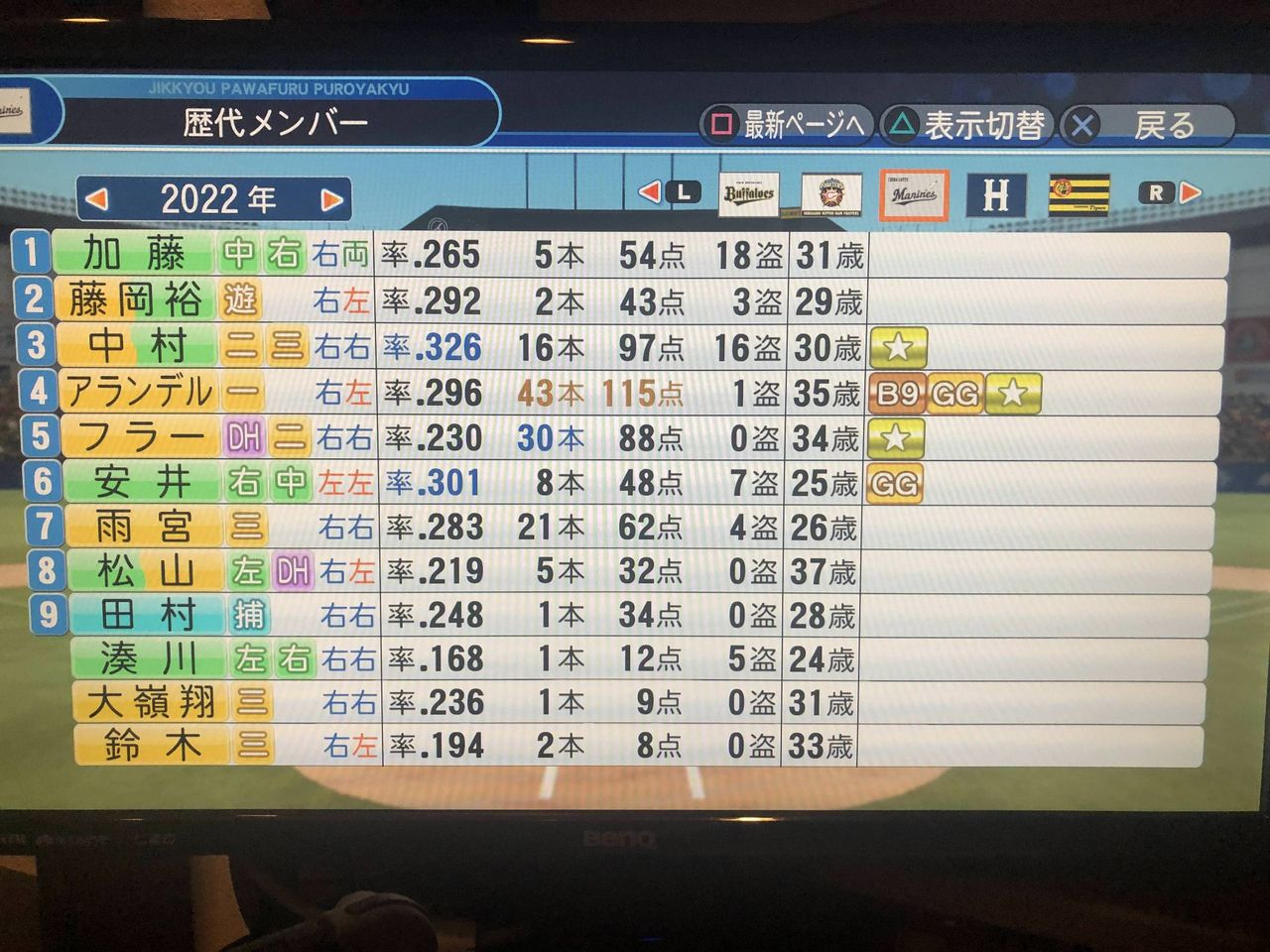 ロッテてパワプロで回すとFA結構入ってて草生えるわ