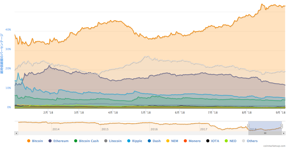 上記は2018年1月1日から9月5日までのドミナンスを表しています。