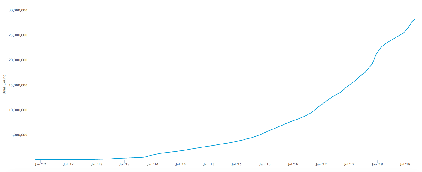 blockchain.comのサイトにアクセスすれば、ビットコインウォレット数の推移が簡単に確認できます。