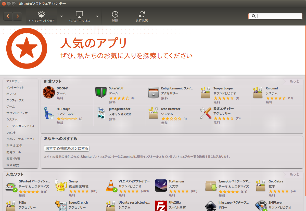 これが「ubuntuソフトウェアセンター」